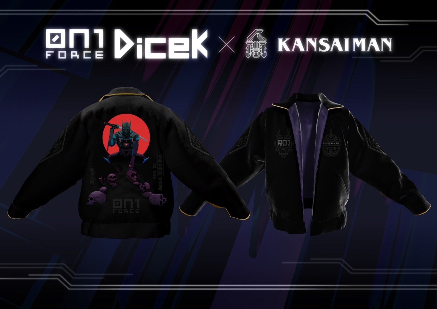 このスカジャンは、2022年7月に0N1 Force Founderが来日した際のCRYPTO ART FES 2022で生まれた共同プロジェクト「TEAM NAGOMI × 0N1 Force powered by KANSAIMAN 」によって制作された特別なアイテムです。「ファッション×革命」をテーマに、0N1 Forceの世界観を表現したTEAM NAGOMI 15名による二次創作作品の中から、投票で最も支持を集めたDiceK氏の作品が、KANSAIMANとのスペシャルコラボとしてデザインされています。