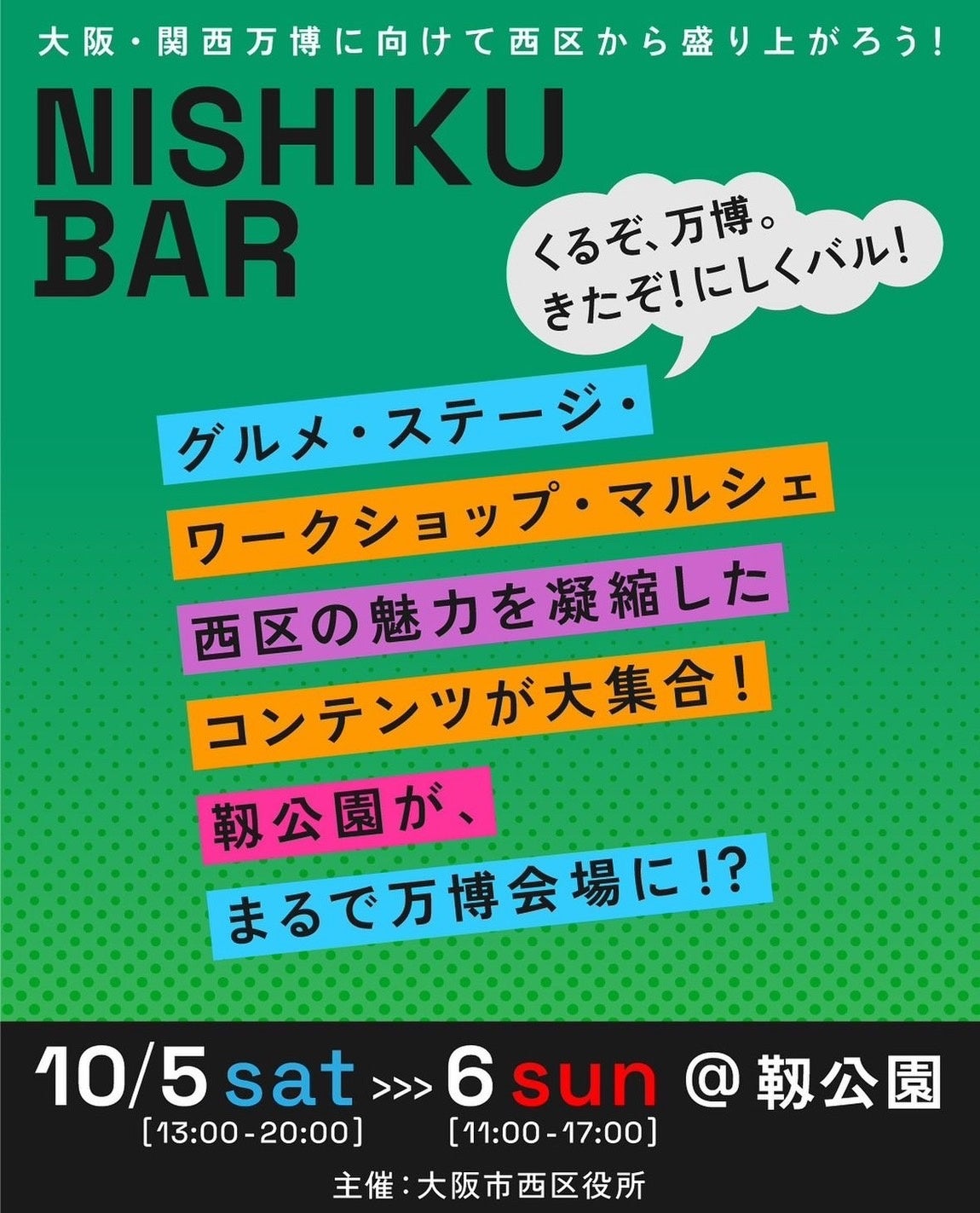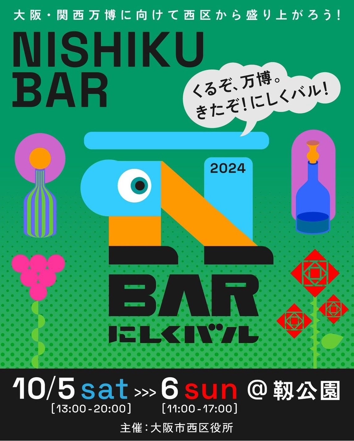 【にしくバル】は、大阪市西区役所主催のもと、地域の魅力を再発見することを目的としていますが、同時に、2025年開催予定の「大阪・関西万博」へ向けた機運を高める役割も担っています。