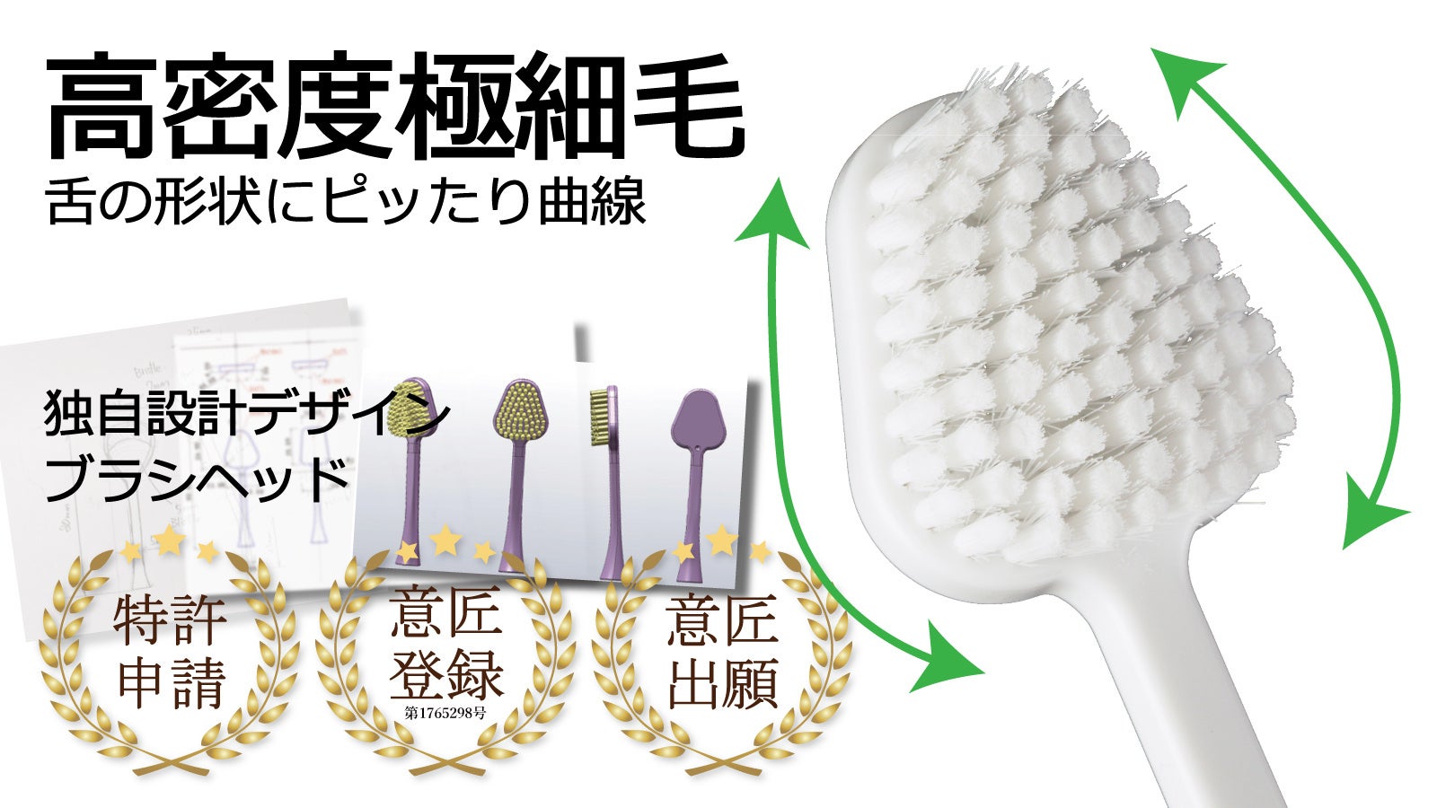 【福岡歯科大学 共同開発】特許申請中の高密度極細毛!歯科医師も推奨する新電動舌ブラシ