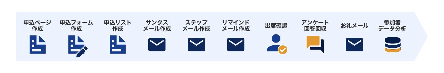 用意したフローに従い、順に入力するだけ!セミナー開催に必要な準備が完了します。