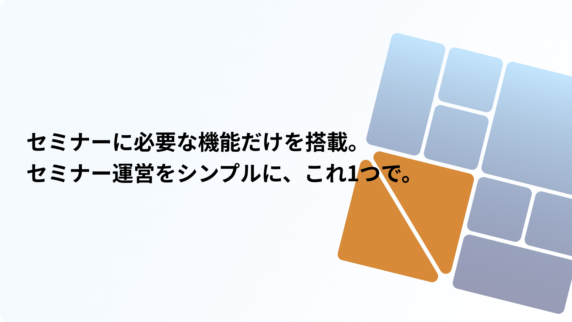 セミナー開催に必要な機能を搭載し、点在しているセミナー業務をワンストップで繋ぎます。