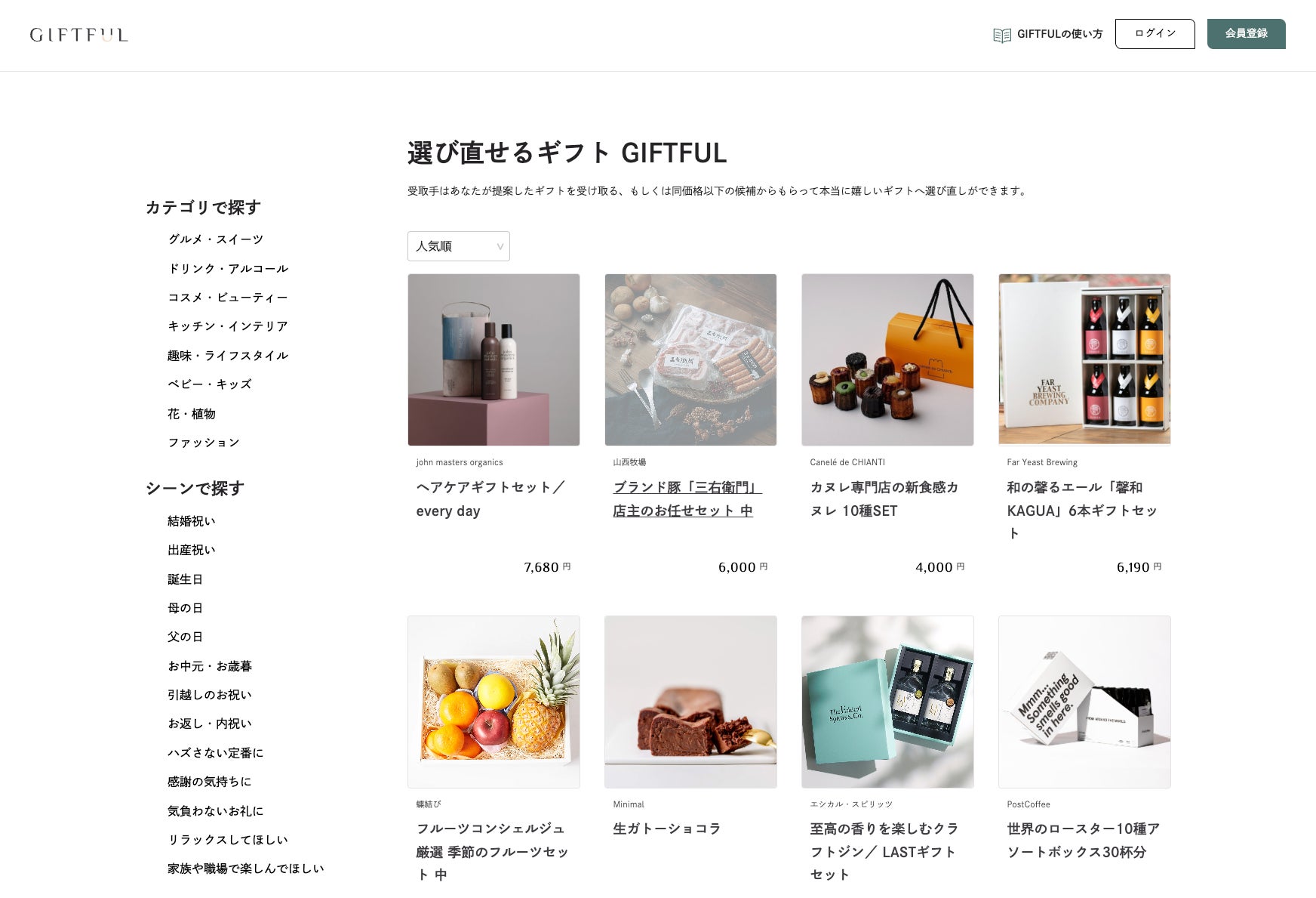 GIFTFULは、相手を想って選んだ気持ちを贈りつつ、受け取り手はもらって本当にうれしいギフトに選び直しができるソーシャルギフトサービスです。 受け取り手は贈られたギフトをそのまま受け取る、もしくは同価格以下のギフト候補からギフトを選び直すことが可能です。贈ってくれた気持ちは嬉しいけれど、「欲しいものじゃなかった」「食べられないものだった」。そんな体験が生まれない、お互いに嬉しいギフトを贈れるサービスです。