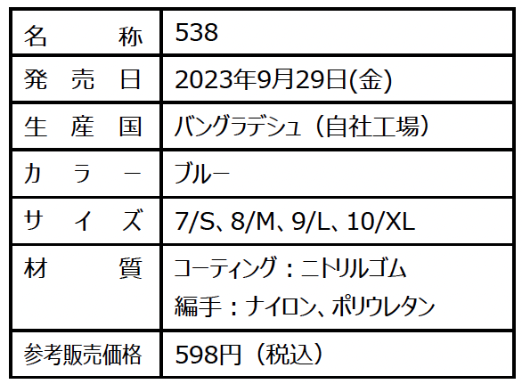 作業用手袋「MagneX(マグネックス)538」 9⽉29⽇ 発売開始