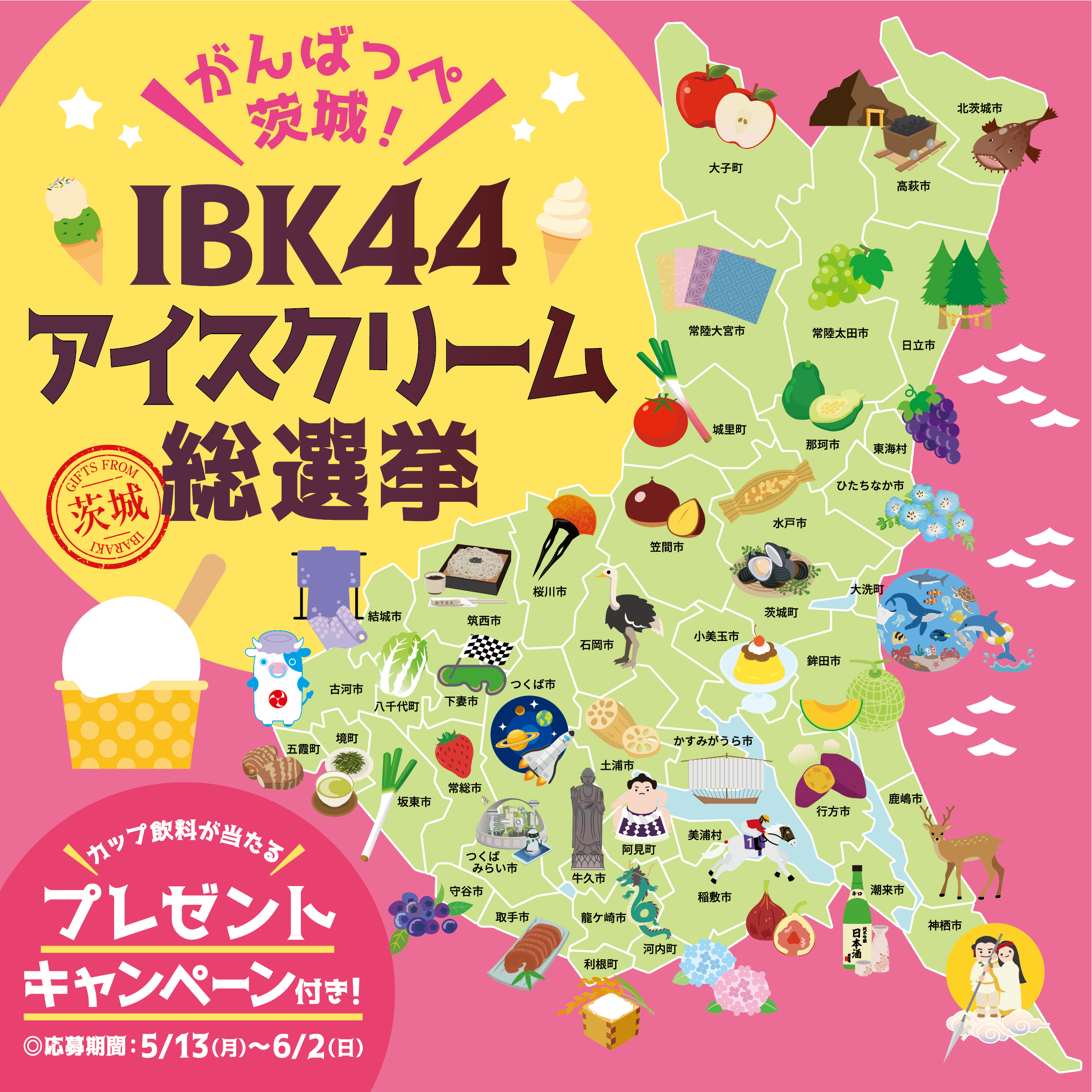 44種全ての商品を販売するのは難しかった為、商品化の味を決めるにあたり、1種類はInstagram・XにてSNS投票(IBK44アイスクリーム総選挙)を行い、一番投票数が多かったつくば市の「宇宙味」に決め、他にも大仏で有名な牛久市をイメージした「大仏味」、ネモフィラ畑で有名なひたち海浜公園のあるひたちなか市をイメージした「ネモフィラ味」など“茨城県らしさ“を打ち出した魅力的なアイスクリームが誕生しました。