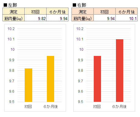 右脚平均筋肉量:プログラム実施前9.94kg→プログラム実施後10.1kg