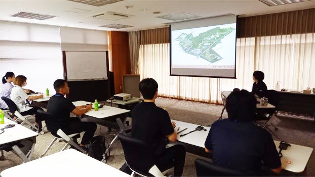 1⽇⽬から、実際、豊洲にあるオフィス⽂具通販「アスクル」さん(アスクル株式会社)の本社に訪問し、レクチャーを受けさせていただき、2⽇⽬以降には、群⾺にあるプラス株式会社さんのPLUSLANDを訪問。多くの施設の施設から得たものを題材にし、課題解決の⼿法を体験。