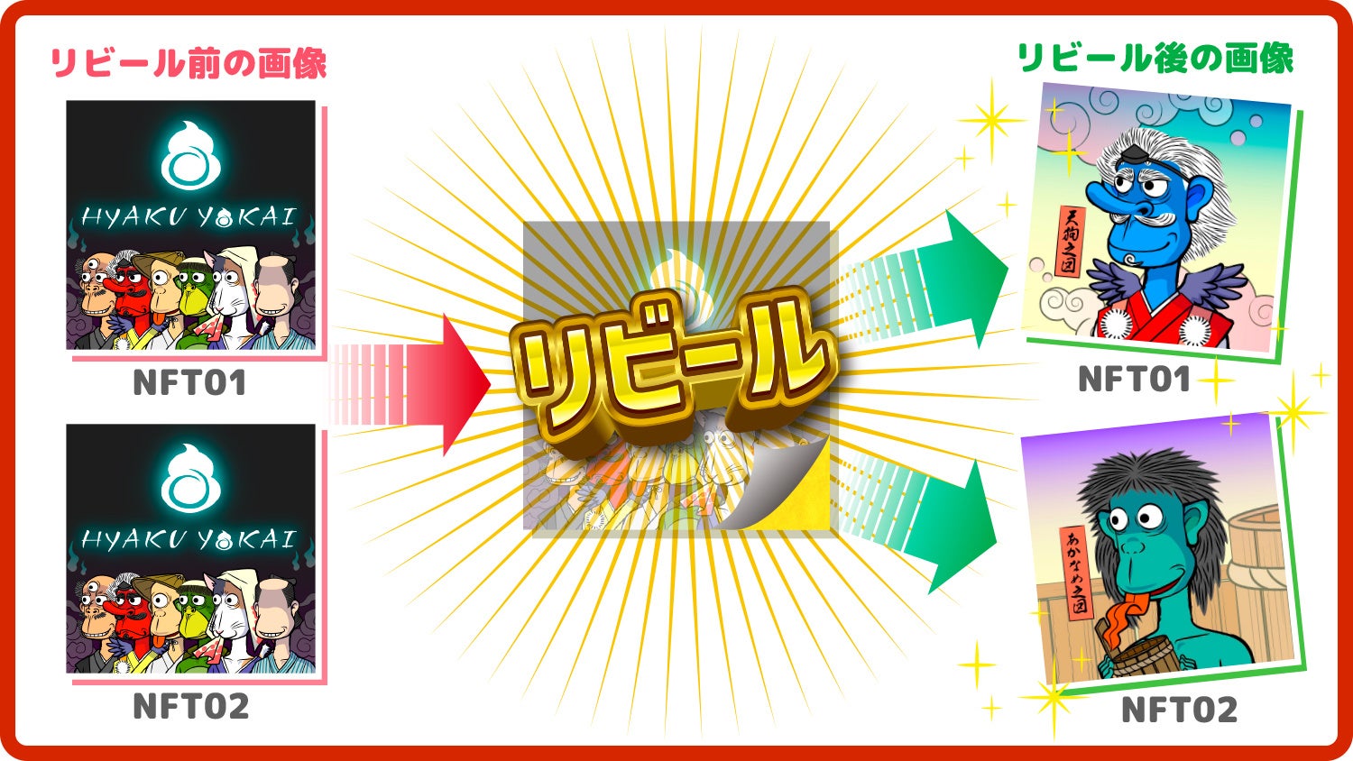 いわゆる期日が設定されているNFTがあり指定された期日を迎えるとその中身(本来のデザインである姿)が明らかになる機能です。(期日などが設定されてなく、突然のリビールということもあります)