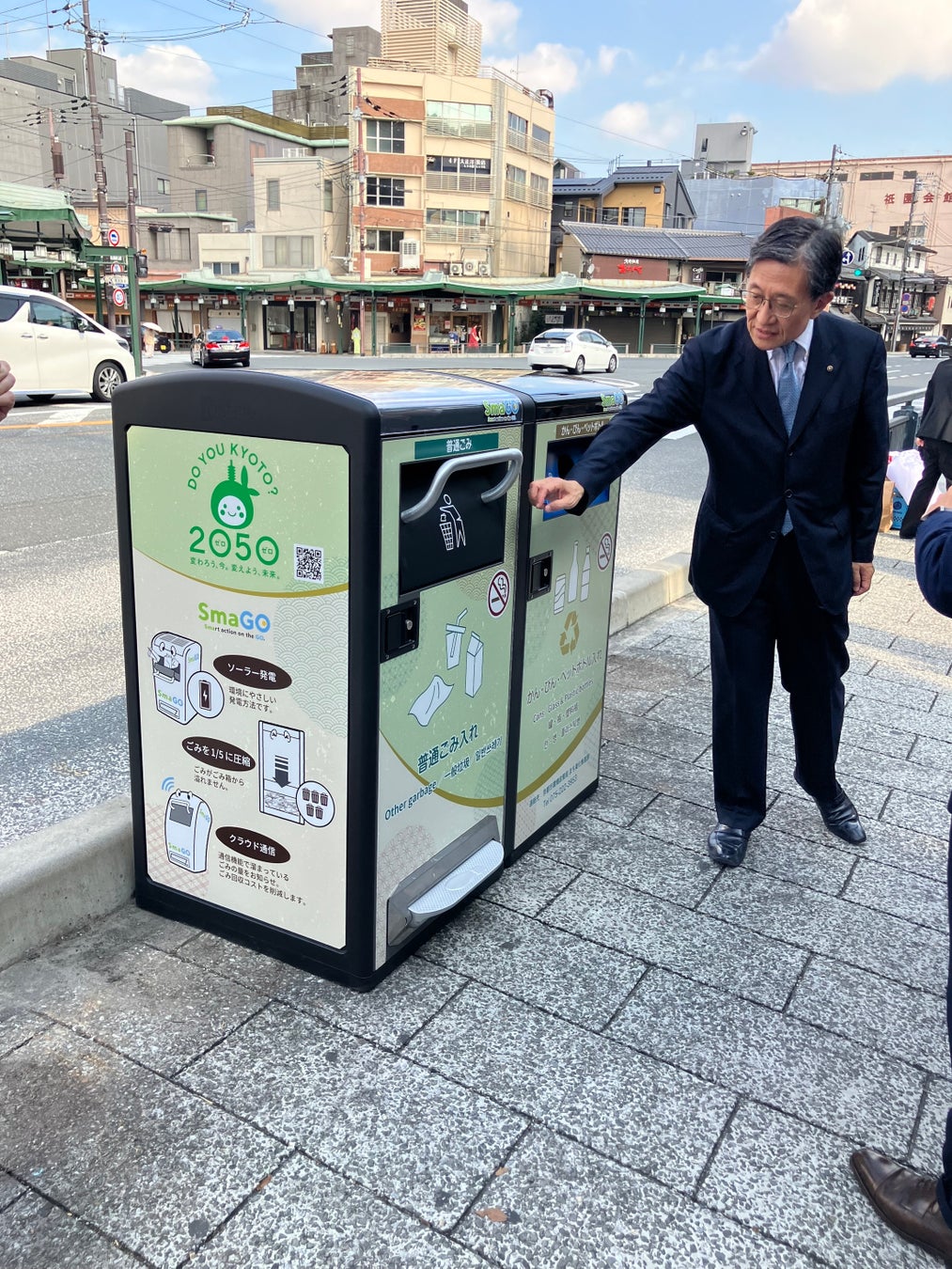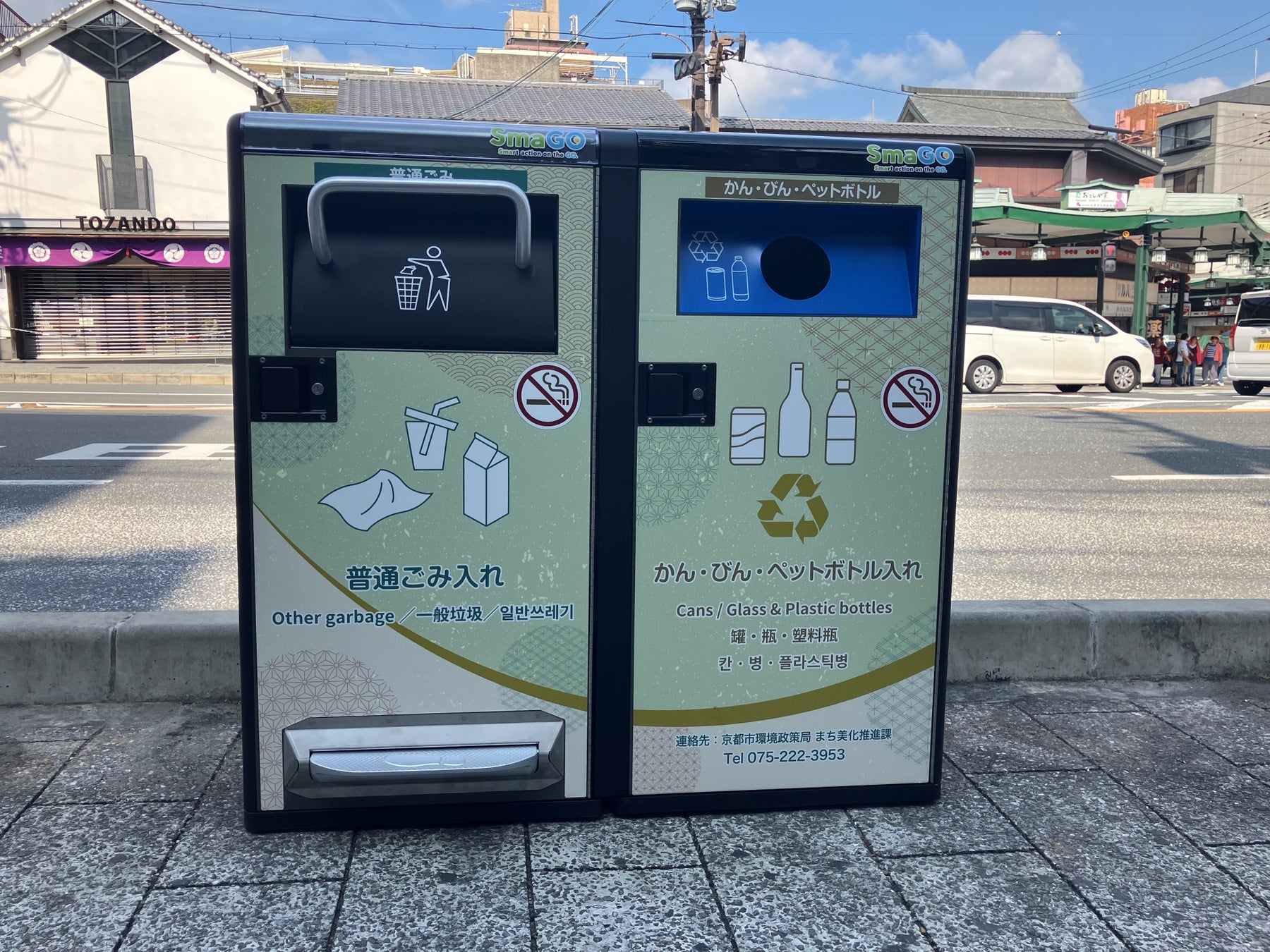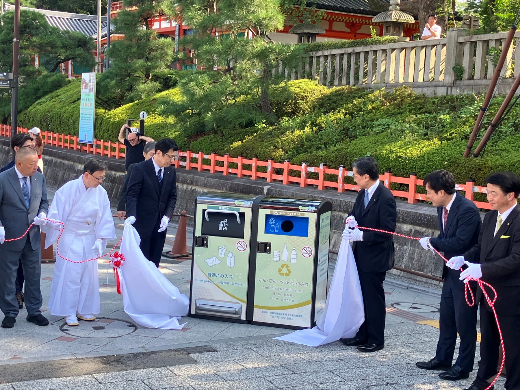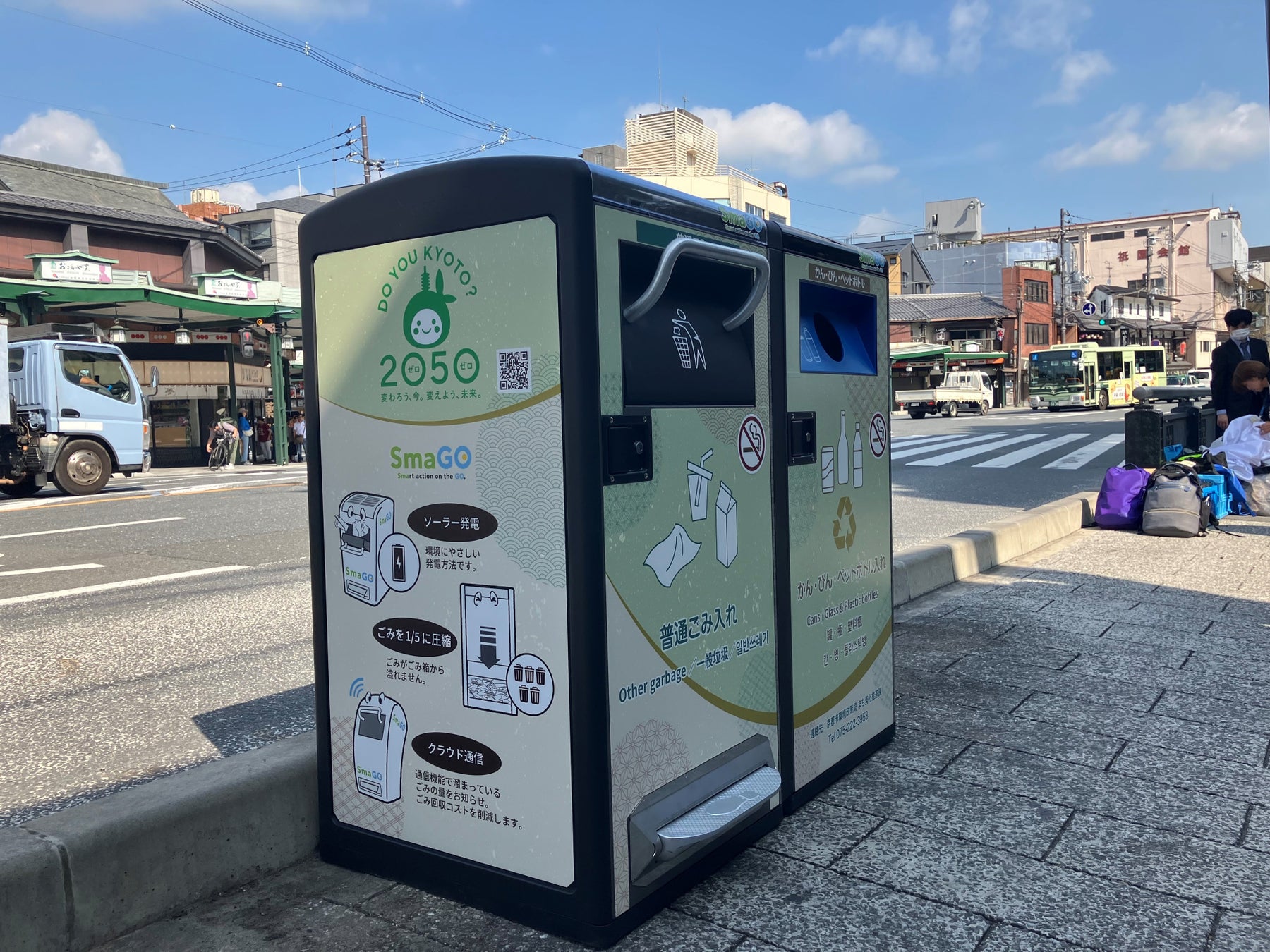 協定に基づき毎年寄贈を続ける中で、2024年9月6日、通算で5カ所目・10基目となる新たなスマートごみ箱を、京都市東山区の祇園地域(八坂神社前)に設置致しました。