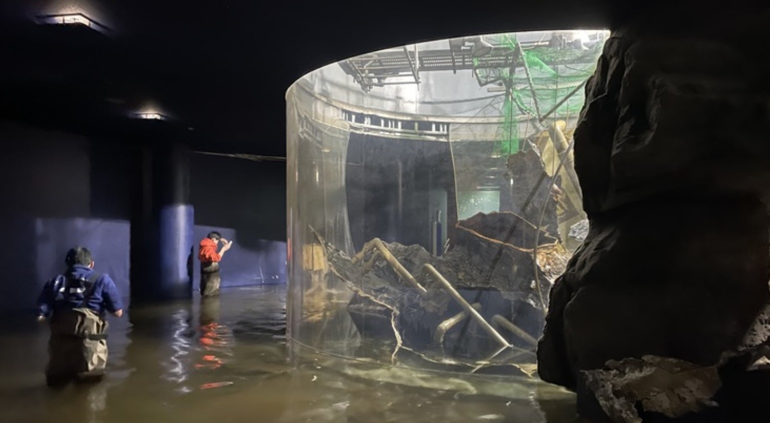 2023年2月10日、琵琶湖博物館において、展示していたビワコオオナマズの水槽が突然破損する事故が起きました。幸い人的被害は無くビワコオオナマズも無事でしたが、安全点検を行ったところ他の水槽にもヒビが見つかり、その補修が完了するまで長期間の水槽閉鎖を余儀なくされました。