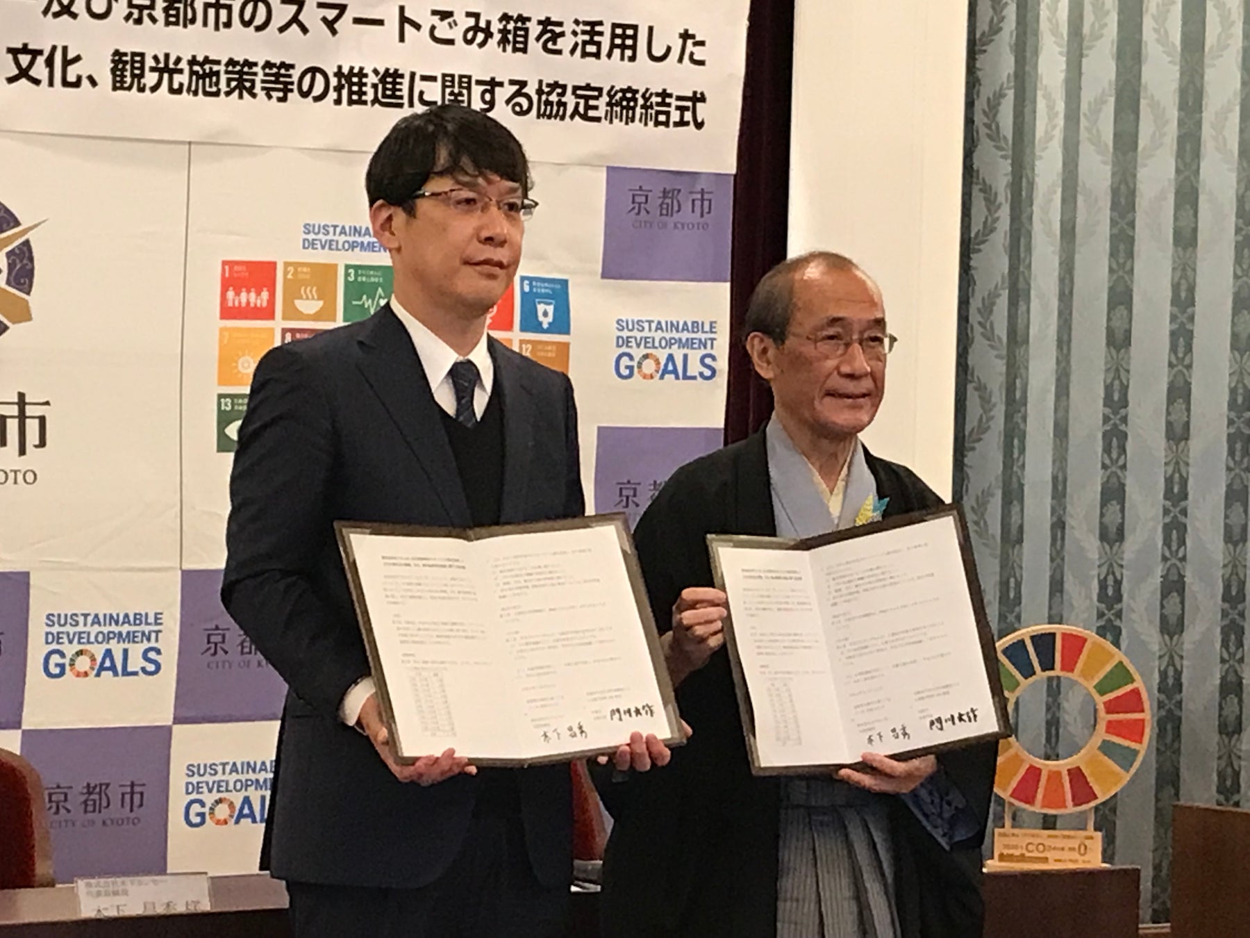 この特徴を生かし、観光地の景観保護とゴミ問題の対策として利用頂く事を目的に、日本を代表する観光名所である京都市様にスマートごみ箱の寄贈を提案。2022年12月22日に協定書の締結に至りました。