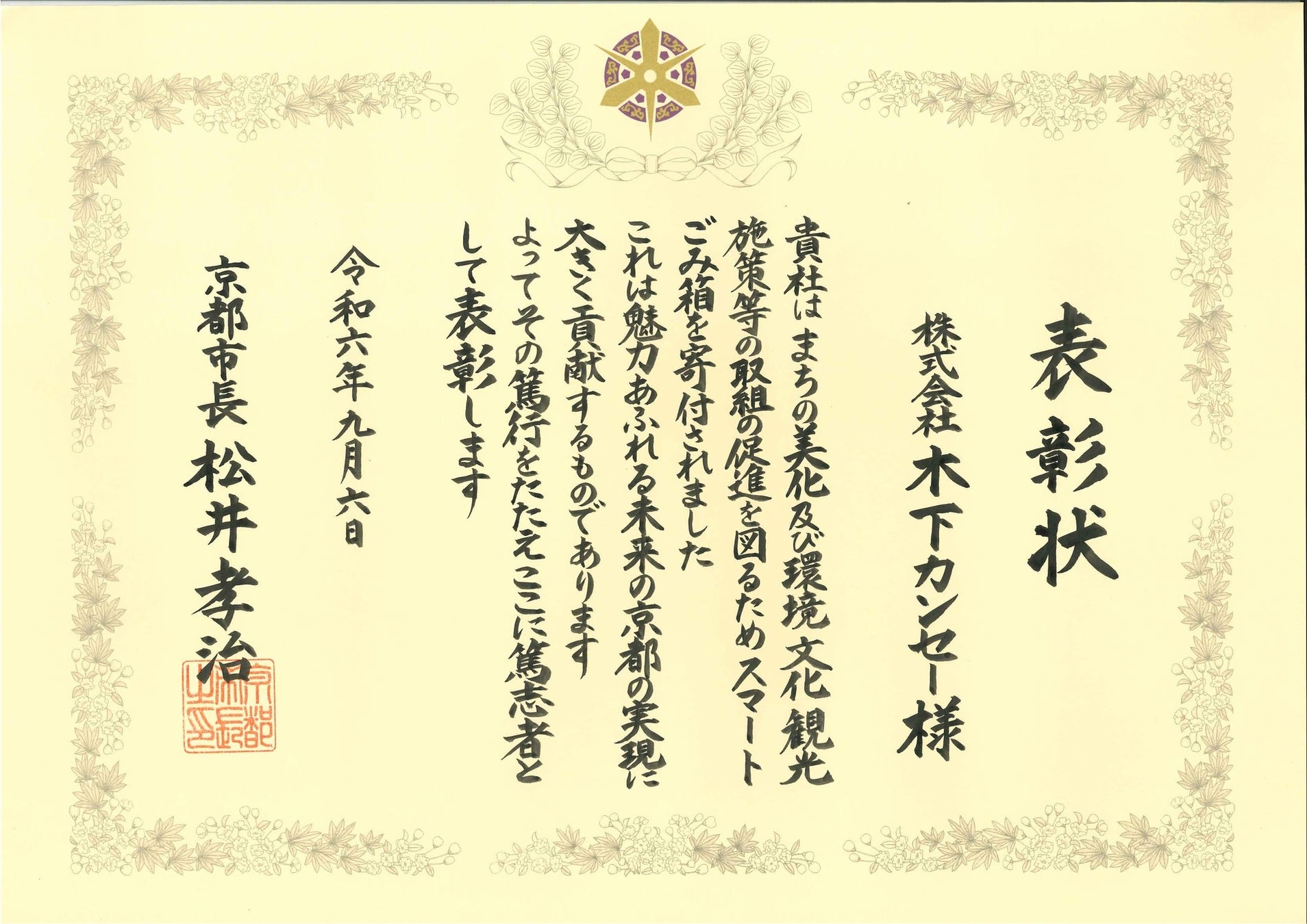 また今回の寄贈に対し、松井市長様より篤志者表彰を頂きました。