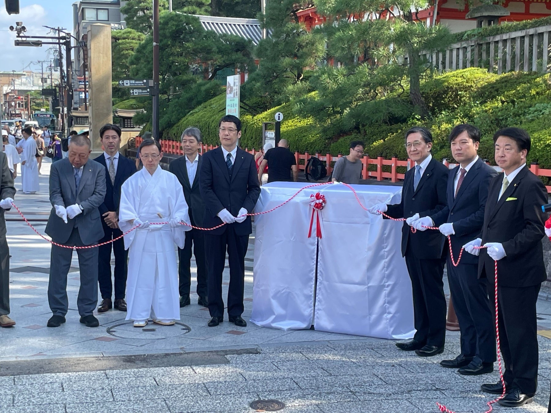 当日は松井京都市長様をはじめ、八坂神社の野村宮司様など多くの関係者の皆様にお集まり頂いた中でお披露目式が開催されました。