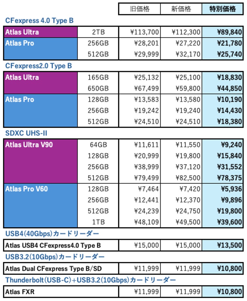 Other World Computing, Inc.(OWC:米国イリノイ州ウッドストック)は、本日Atlasシリーズのメモリカード、カードリーダーの一部製品の価格変更をいたしました。また同時に7月12日(金)12時から7月17日(水)23時59分の期間でアマゾンOWC直営公式ストアでこれらの製品を特別価格にて販売をしております。(期間内でも在庫がなくなり次第終となります)