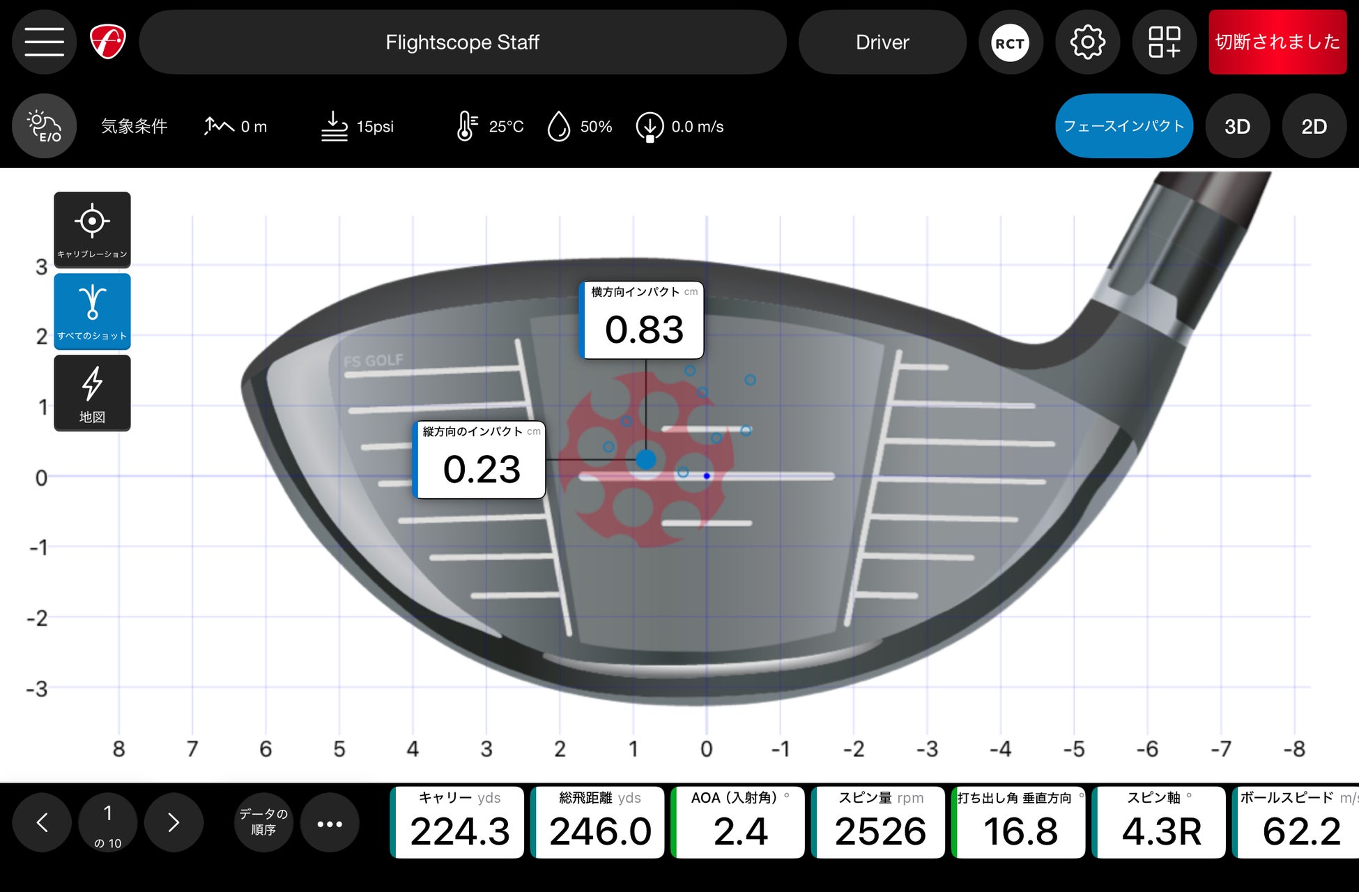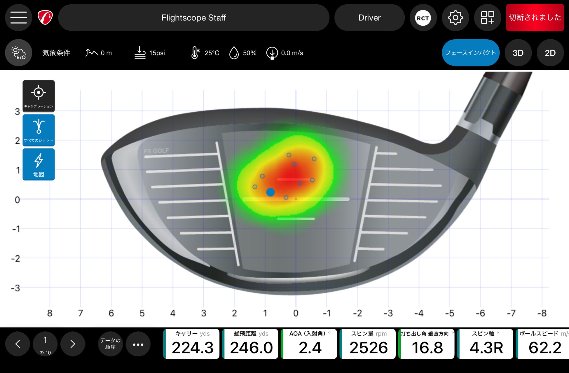 セッション全体を振り返り、クラブフェースのどの部分で最も打撃が多いかを正確に把握できま