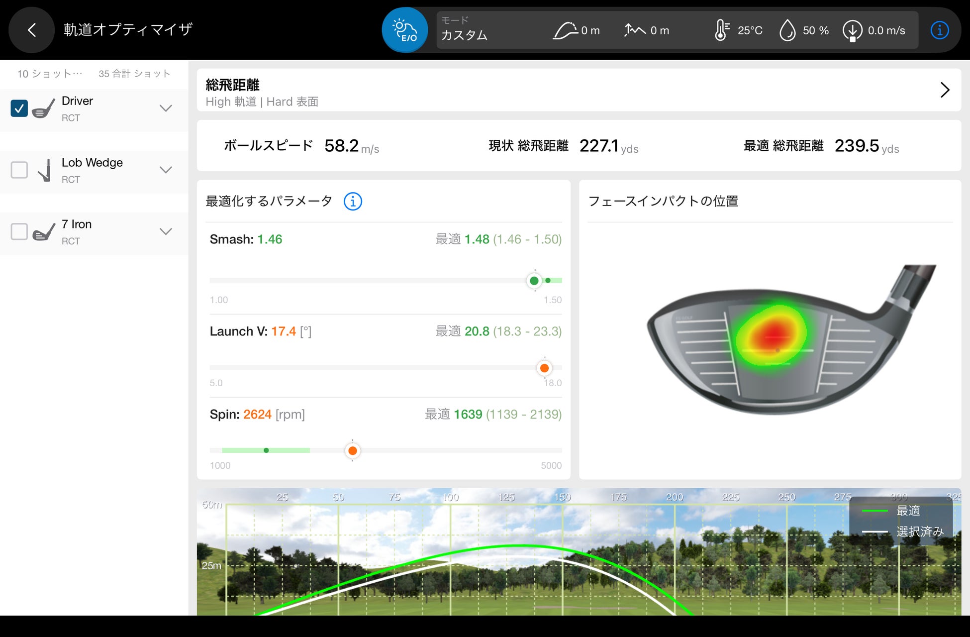 パーソナライズされたショットデータと天候などの環境要因に基づいて、最適化するための