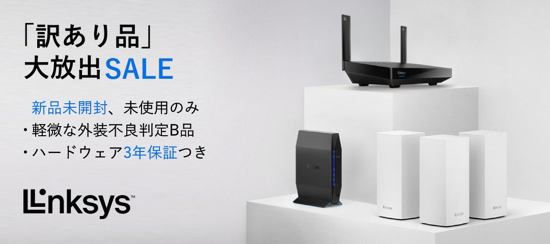 Linksys(リンクシス)はこのたびD2Cサイト、Linksys Japan Online Store(リンクシスジャパンオンラインストア)を開設しました。最新情報をLinksys日本語サイトとして素早くお届けするとともに、大規模導入・新規取引をご希望のお客様向けの法人窓口、新品未開封ながら軽微な外装破損のある商品をお求めやすい価格でご提供するアウトレットセール開催など充実の内容です。