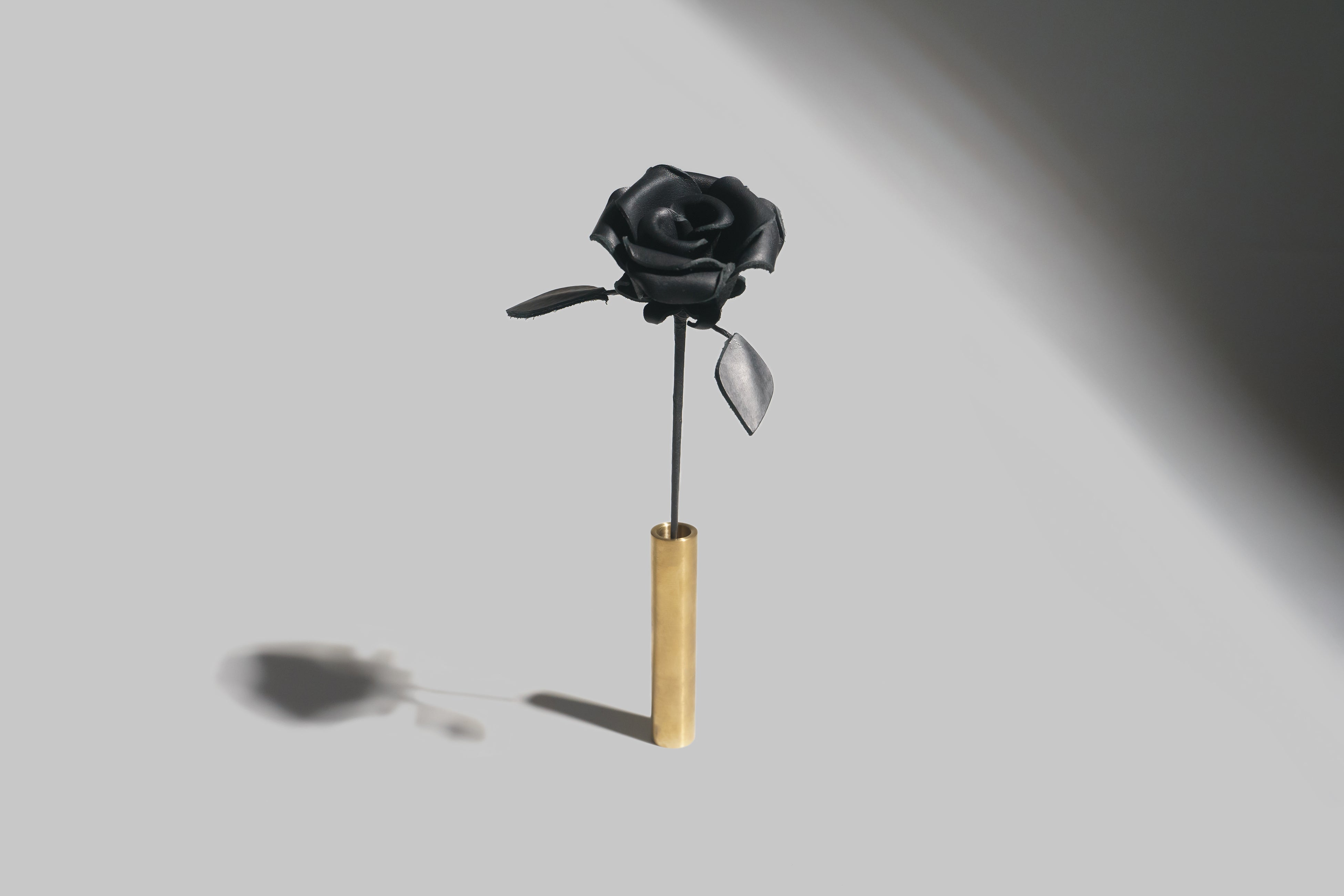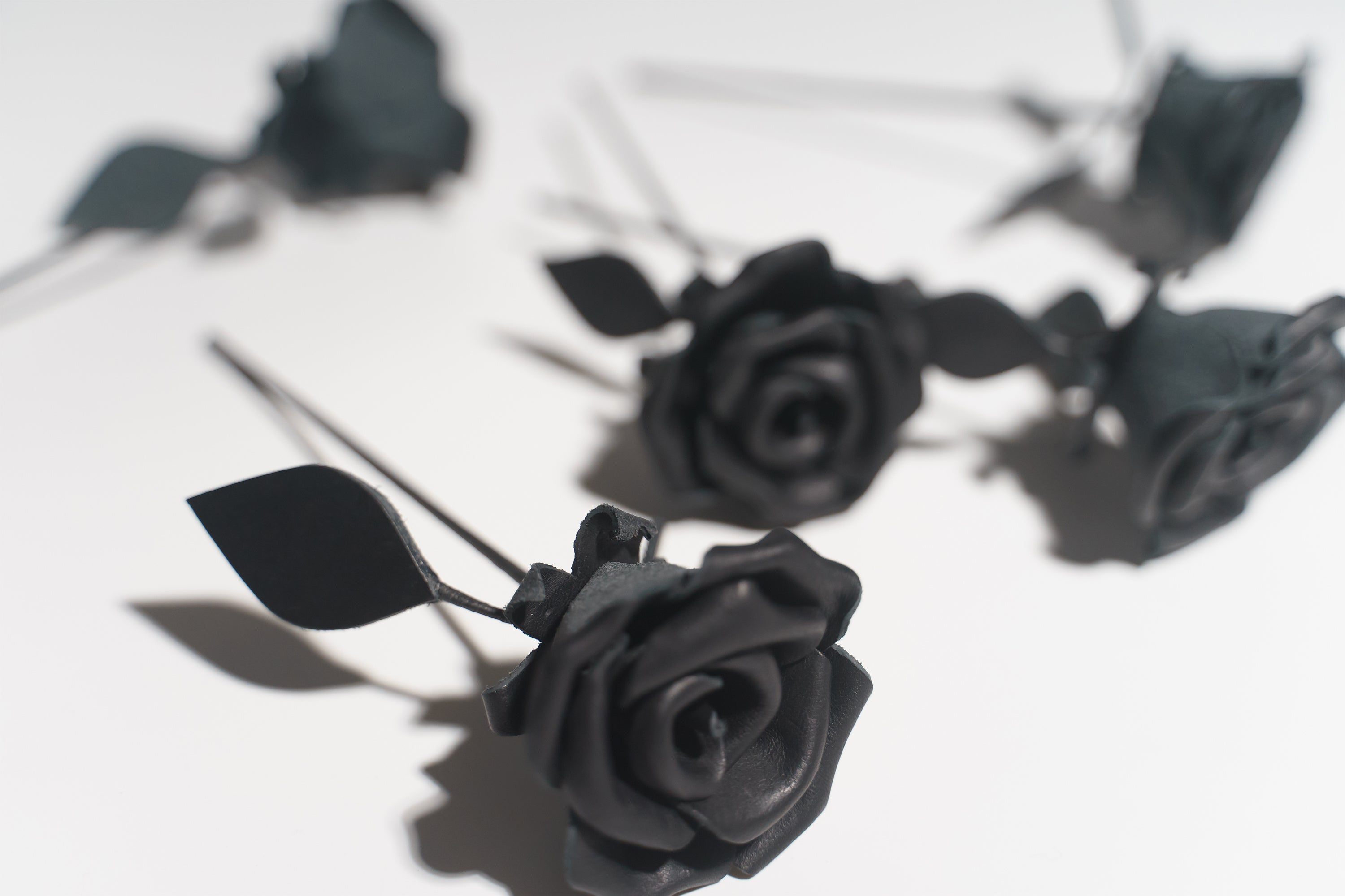 Aging Rose(エイジングローズ)は、鞄や財布などに多く使われる上質なヌメ革を贅沢に使用したローズのオブジェです。そのAging Roseにブラックカラーが新たに加わりました。