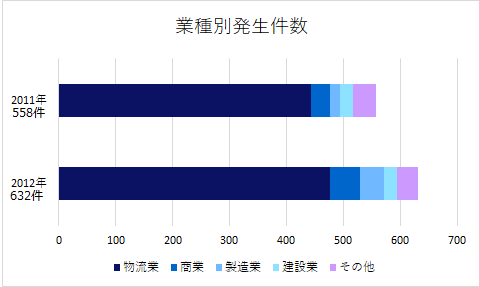 前述の環境下で利便性が高く、広く物流の現場で用いられているテールゲートリフターに特別教育の受講義務が課せられることとなりました。労働安全衛生総合研究所の調査ではテールゲートリフターの労働災害発生件数は、1年間で約600件程度で推移しております。発生割合としては物流業が圧倒的に多いものの、続いて商業や製造業も労働災害の割合が多くなっており、幅広い業種で対応が求められております。当センターでは県内の幅広い業種からの受講ニーズを把握し、講習を開始する事となりました。