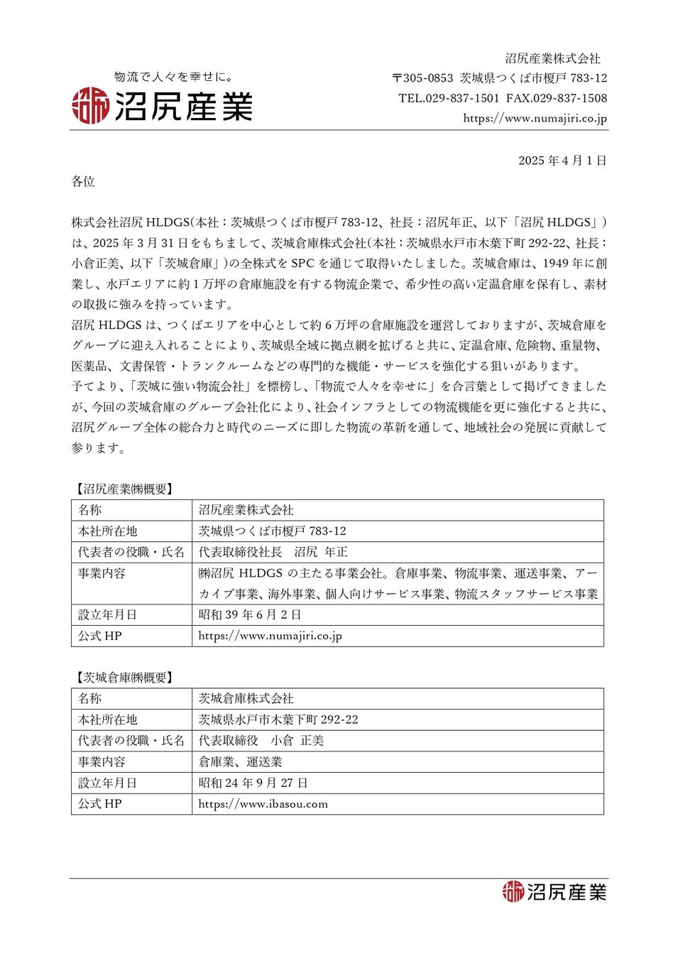 茨城倉庫株式会社の全株式譲受による子会社化について