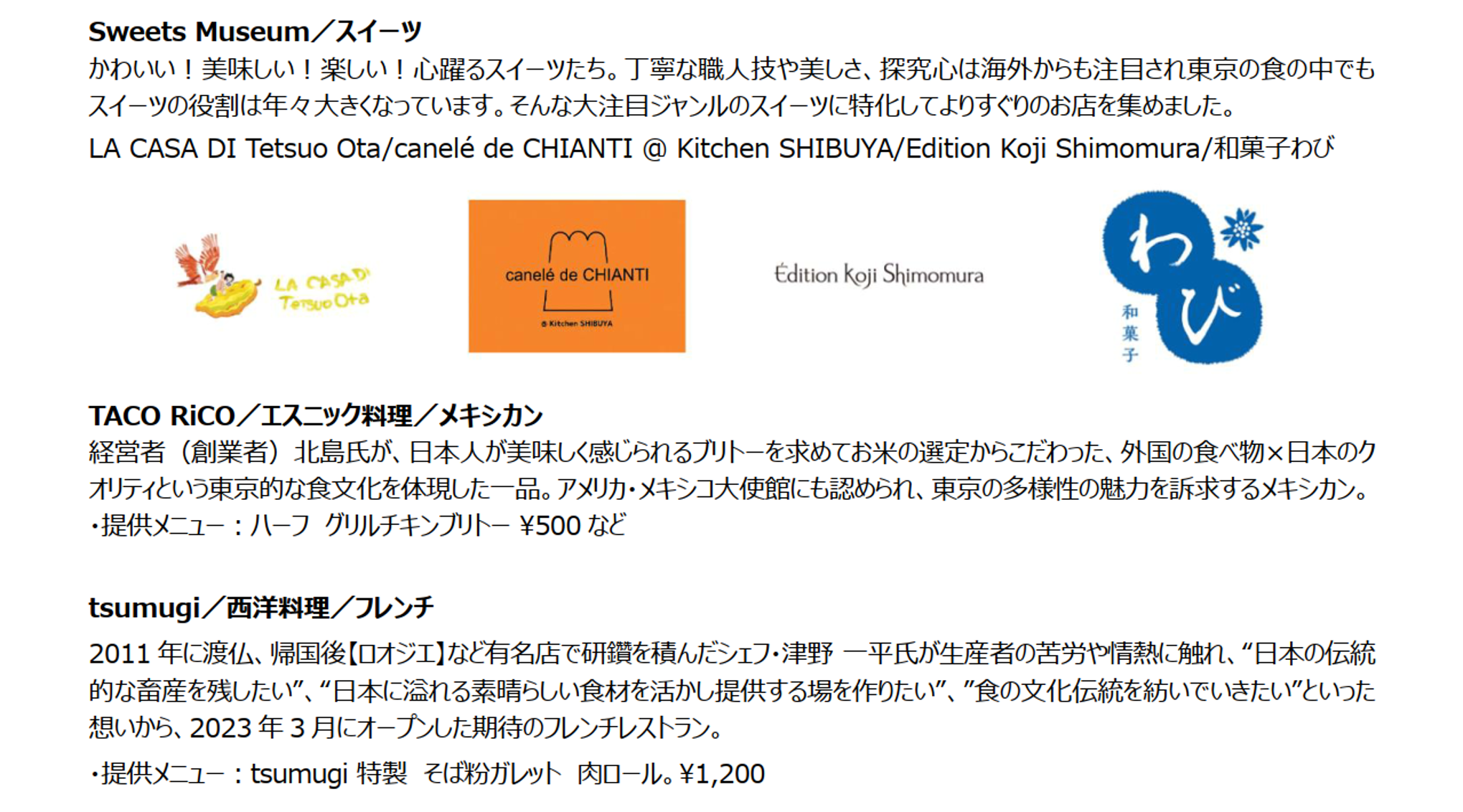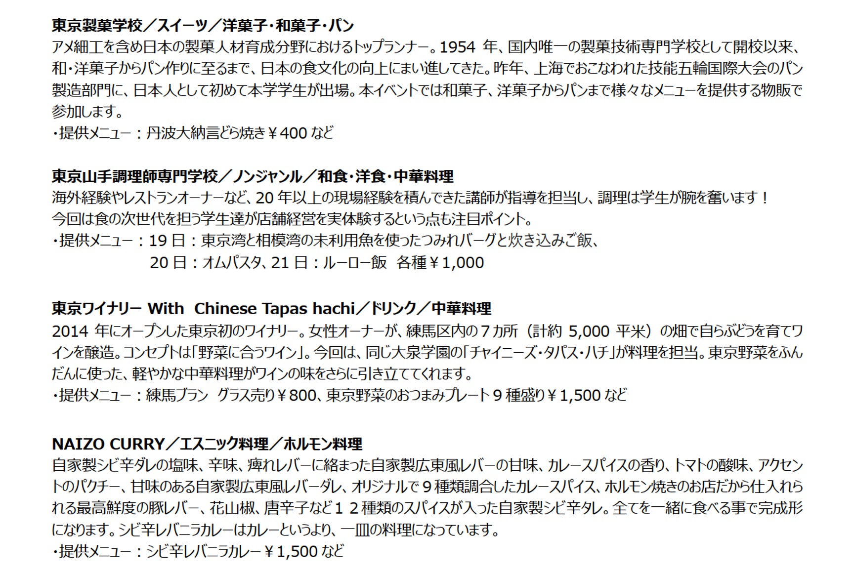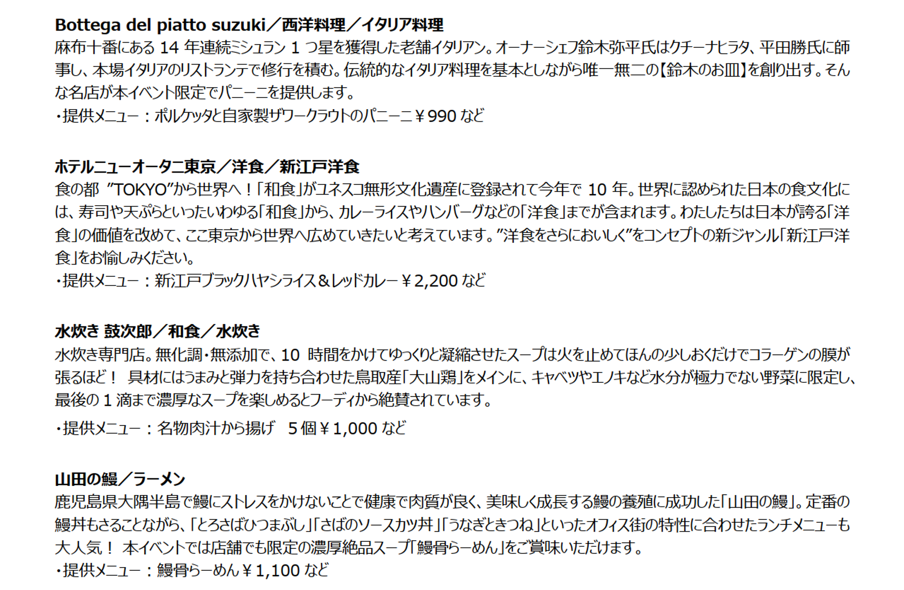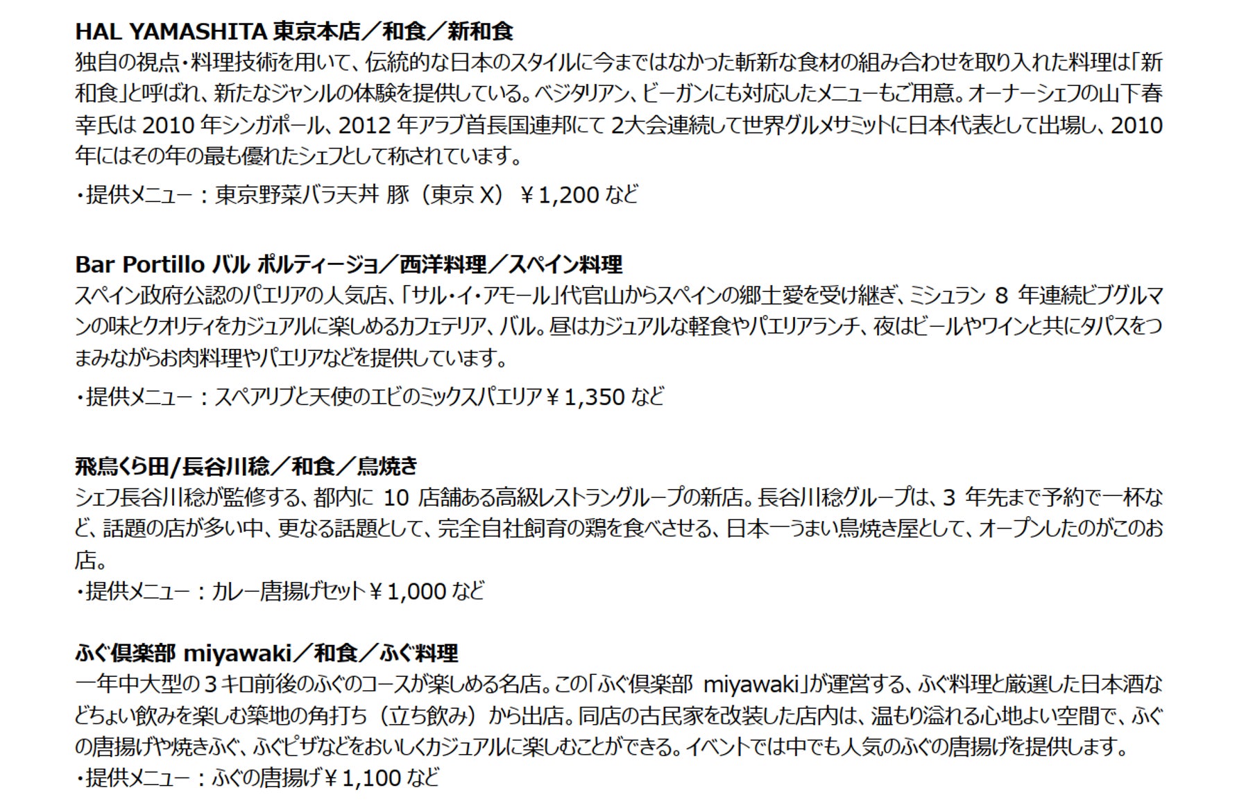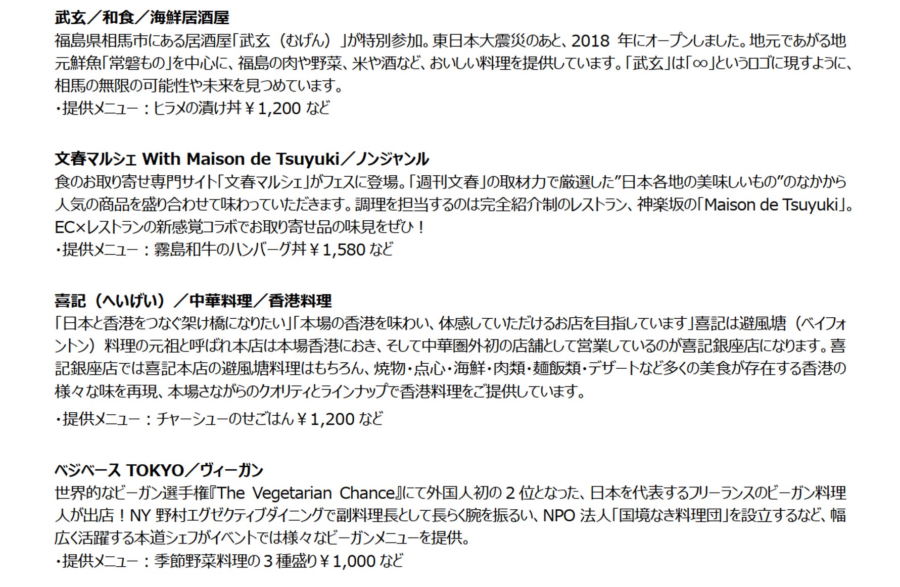 ※出店店舗の紹介文、シェフプロフィールなど詳細については、公式WEBサイトからご確認ください。