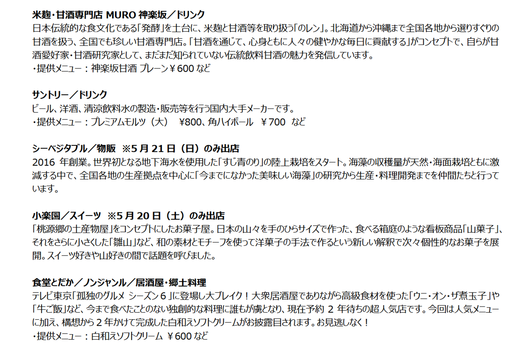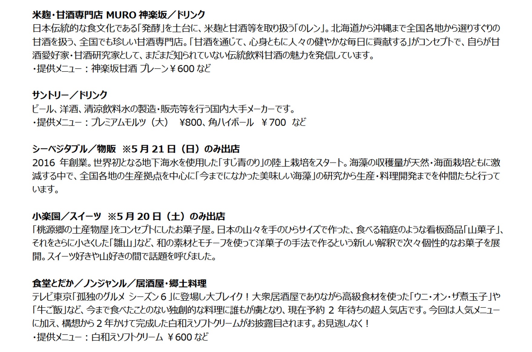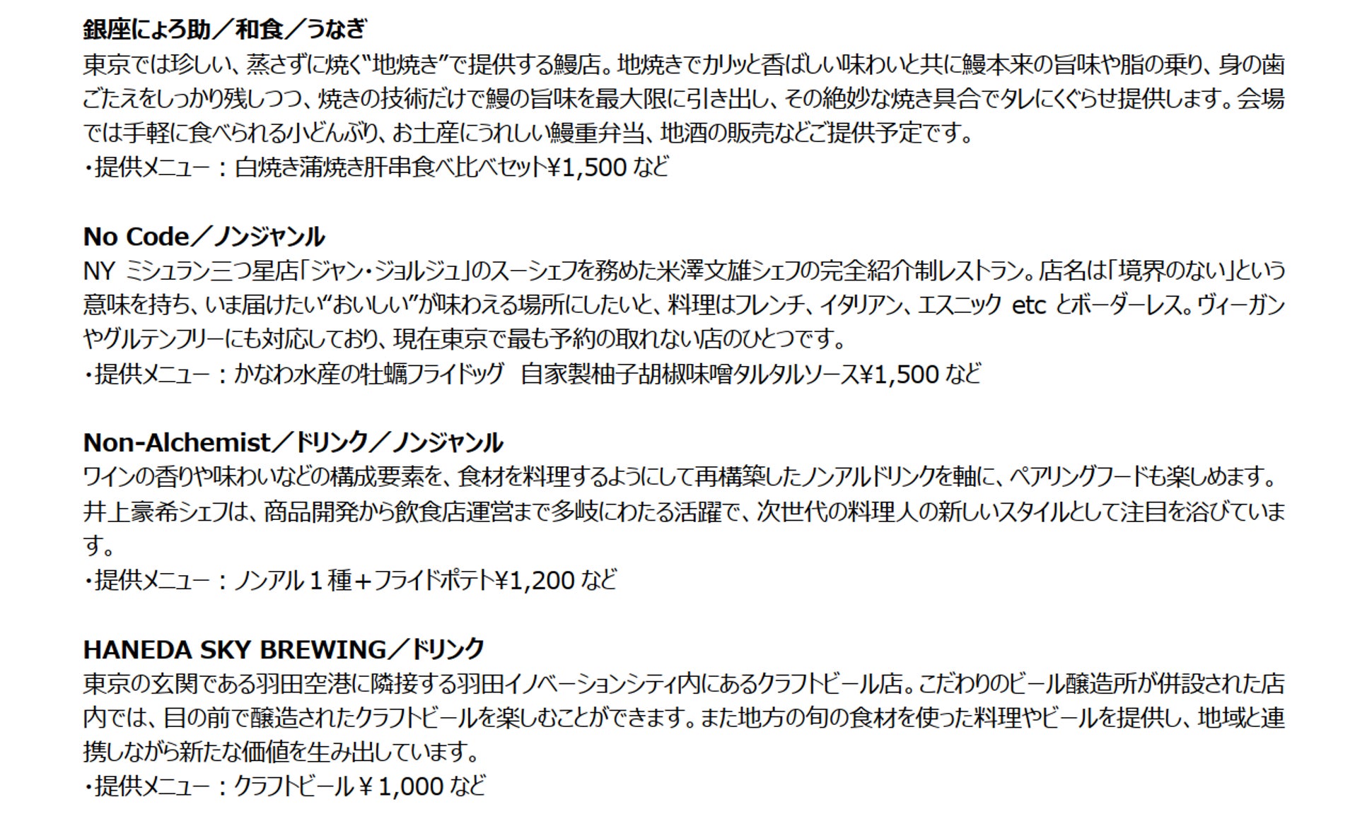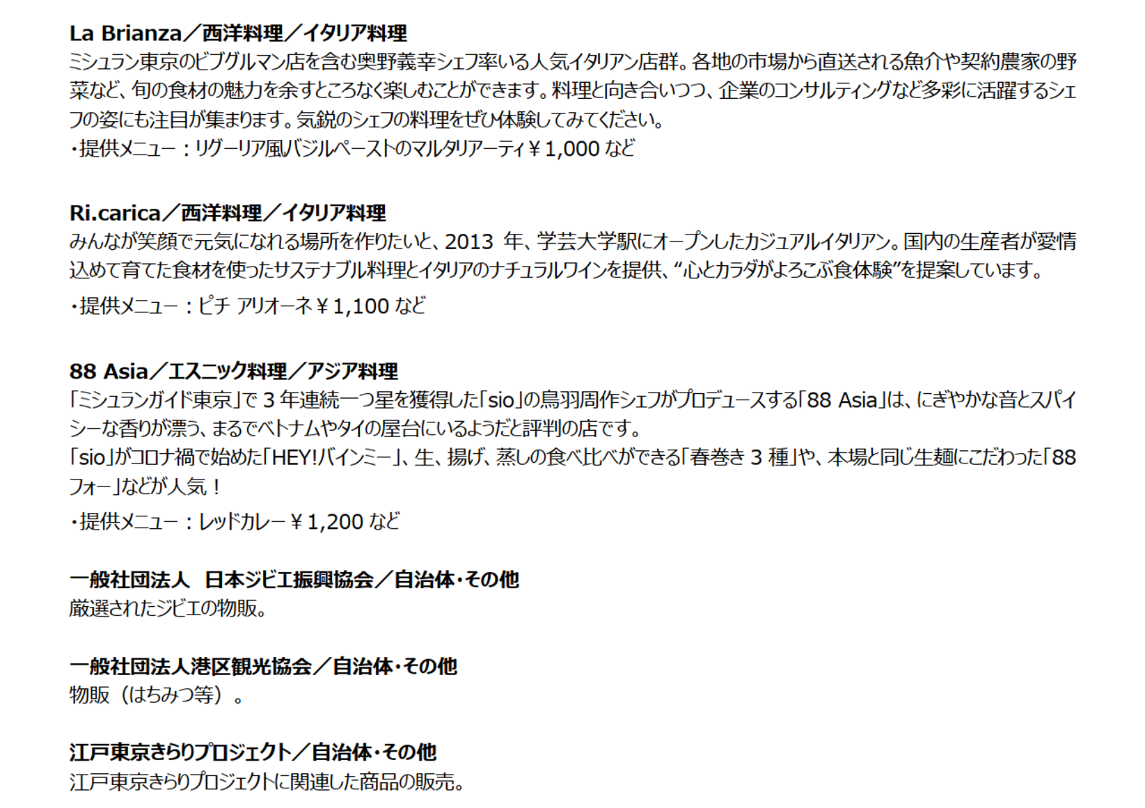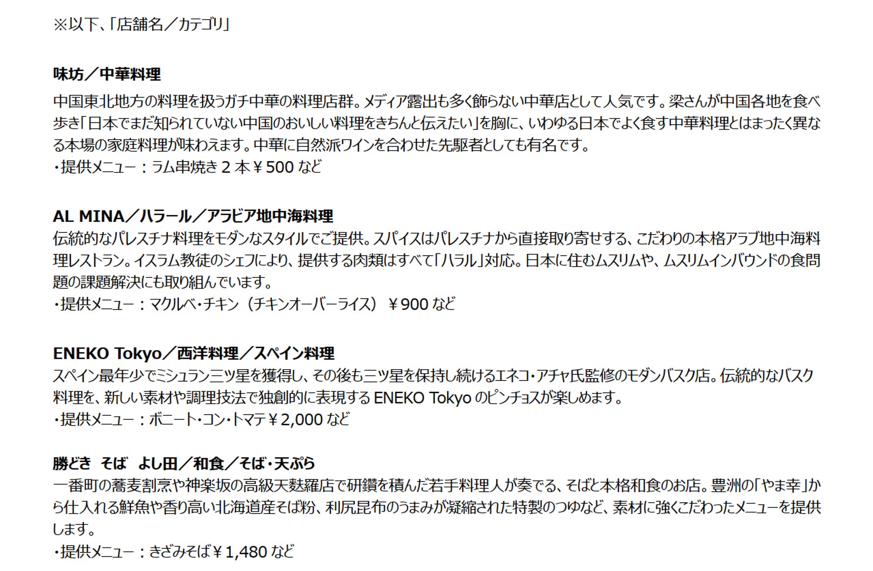※出店店舗の紹介文、シェフプロフィールなど詳細については、公式WEBサイトからご確認ください。