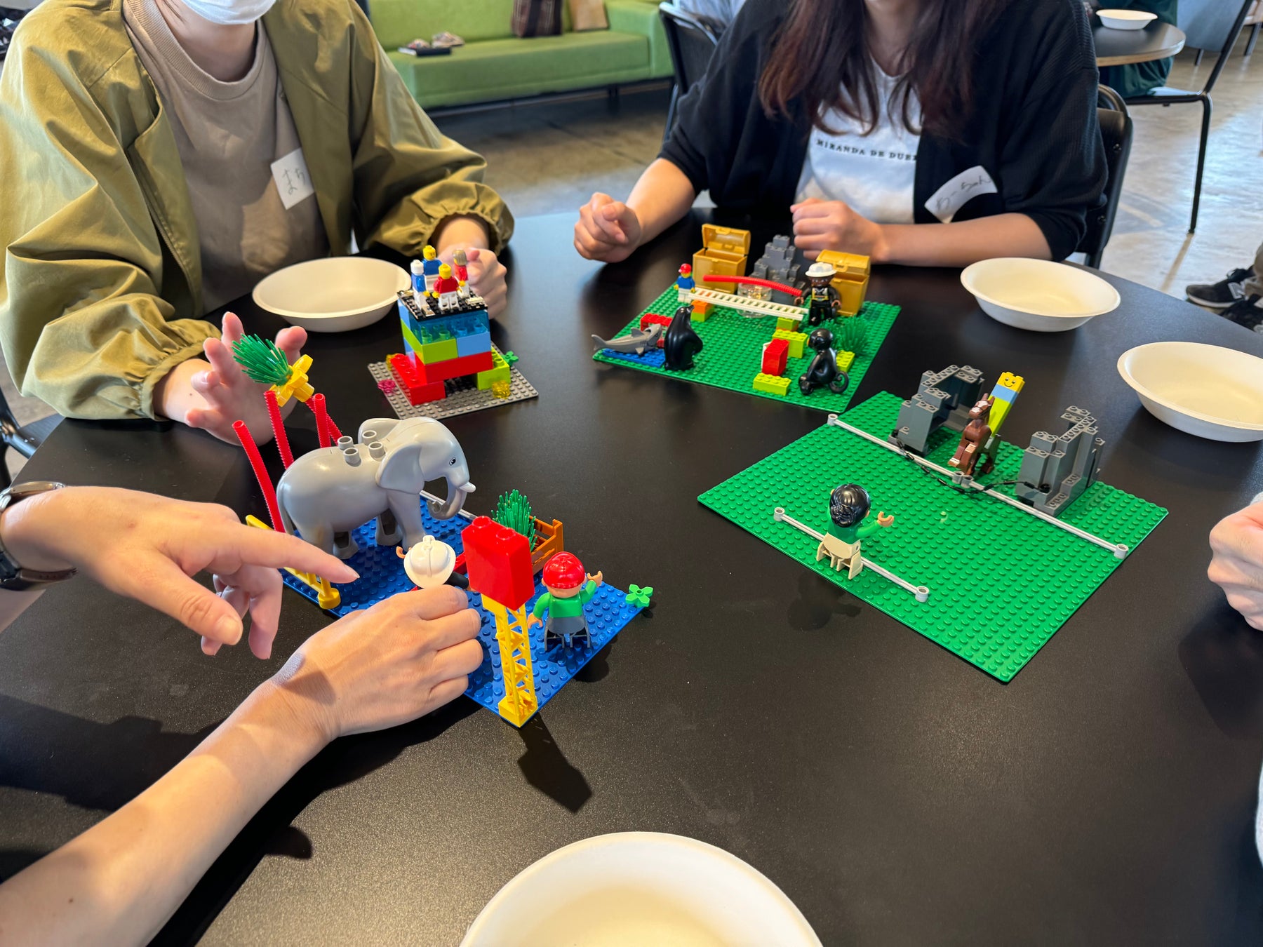 (※)レゴ®シリアスプレイ®メソッドは、レゴブロックを使ったビジネス課題解決とチームビルディング手法です。参加者はレゴモデルを作り、アイデアを共有して問題解決や新しい視点を得ます。これにより、結束力とコミュニケーションが強化され、複雑な問題の新しい解決策が見つかります。全員が平等に意見を出し合うことで、深い洞察が得られます。