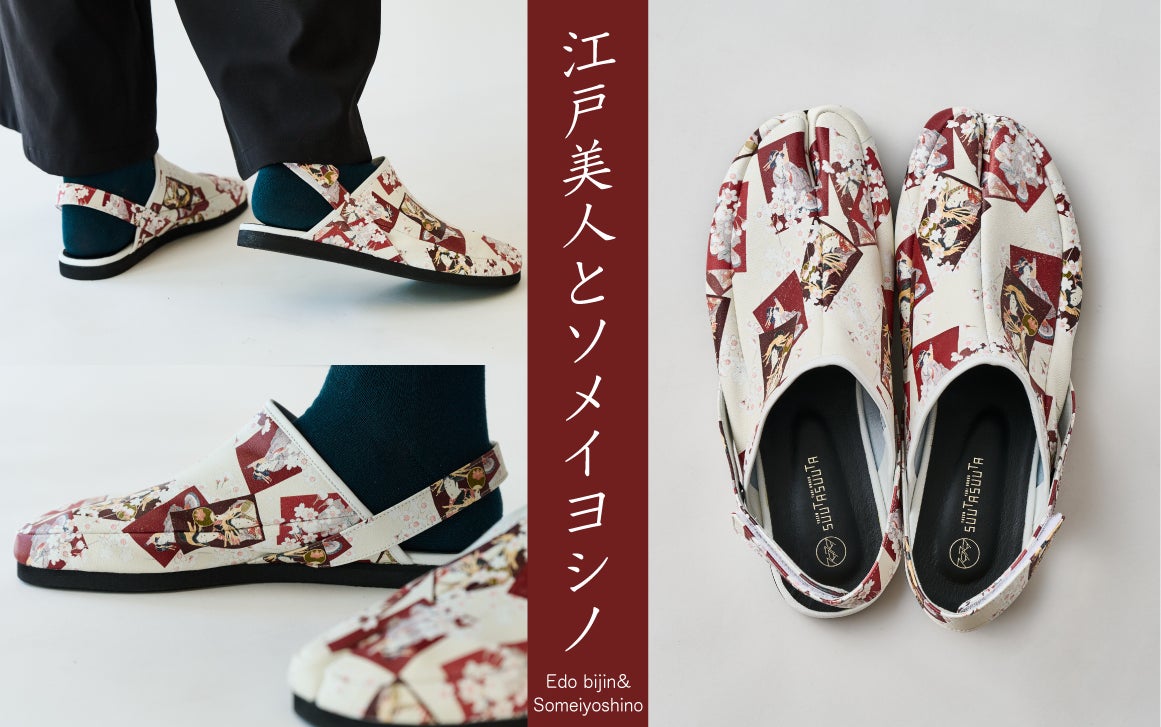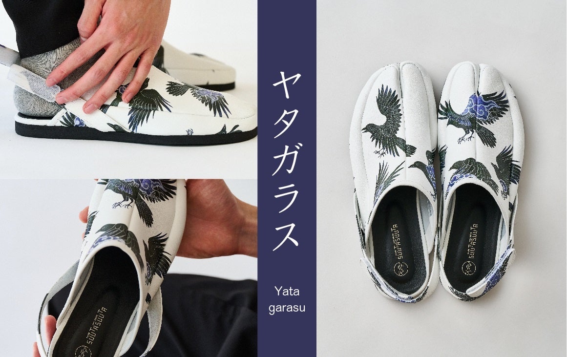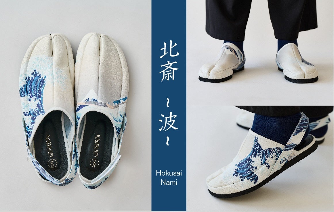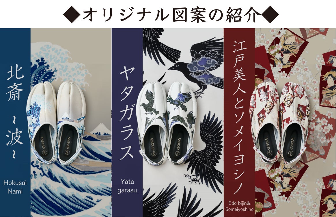今回、ワザビ社が開発した足袋型シューズに、オリジナルの友禅柄をコラボ。