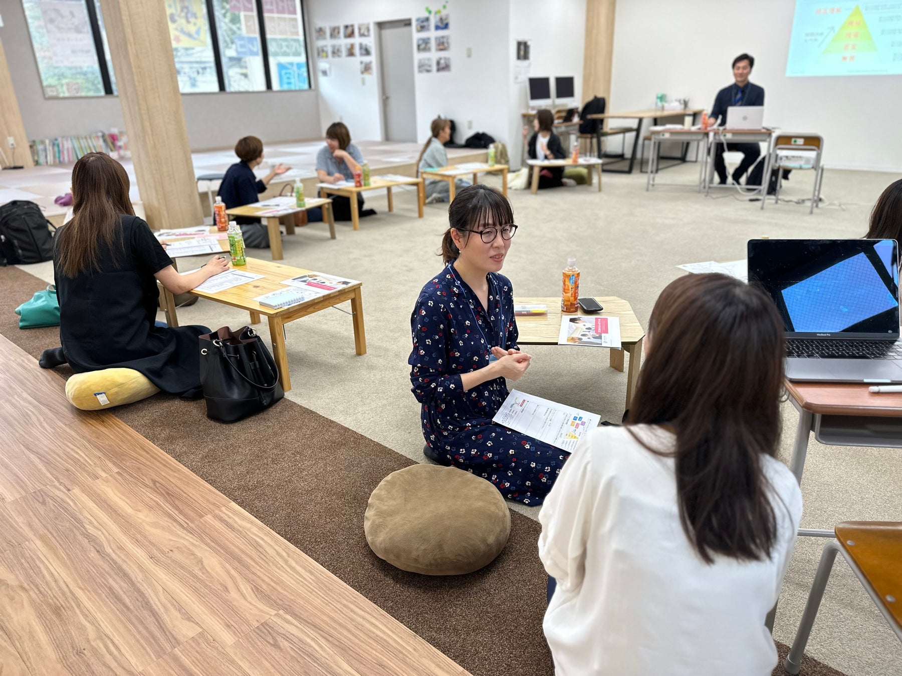 開設からこれまでの間に、大人向けのワークショップ『おとなふらっぽ』を2回開催。1回目は「高校生に求められる居場所とはどんな場所なのか?」、2回目は「子どもたちと接する上で理解しておきたい、傾聴と同調の違い」をテーマとしたワークショップを実施し、高校の教職員の方やファミリーホームを運営する方、キャリアコンサルタントの方、企業の方など、さまざまな職種の方にご参加いただきました。セミナーやワークショップを通じて、子どもたちと関わる上ですぐに実践できるポイントも共有していきました。