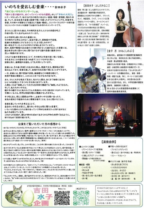 コントラバス奏者吉田水子さん企画「めぐるいのちのコンサート」