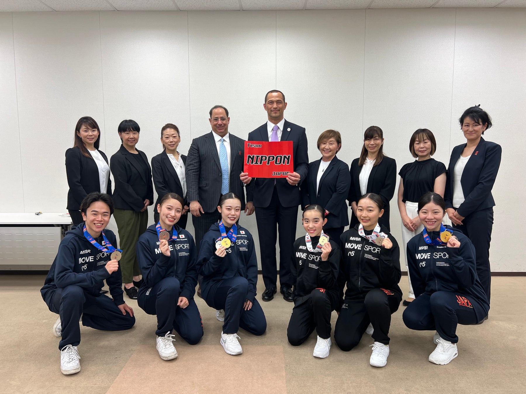 チアリーディング・パフォーマンスチア日本代表、室伏広治スポーツ庁長官を表敬訪問