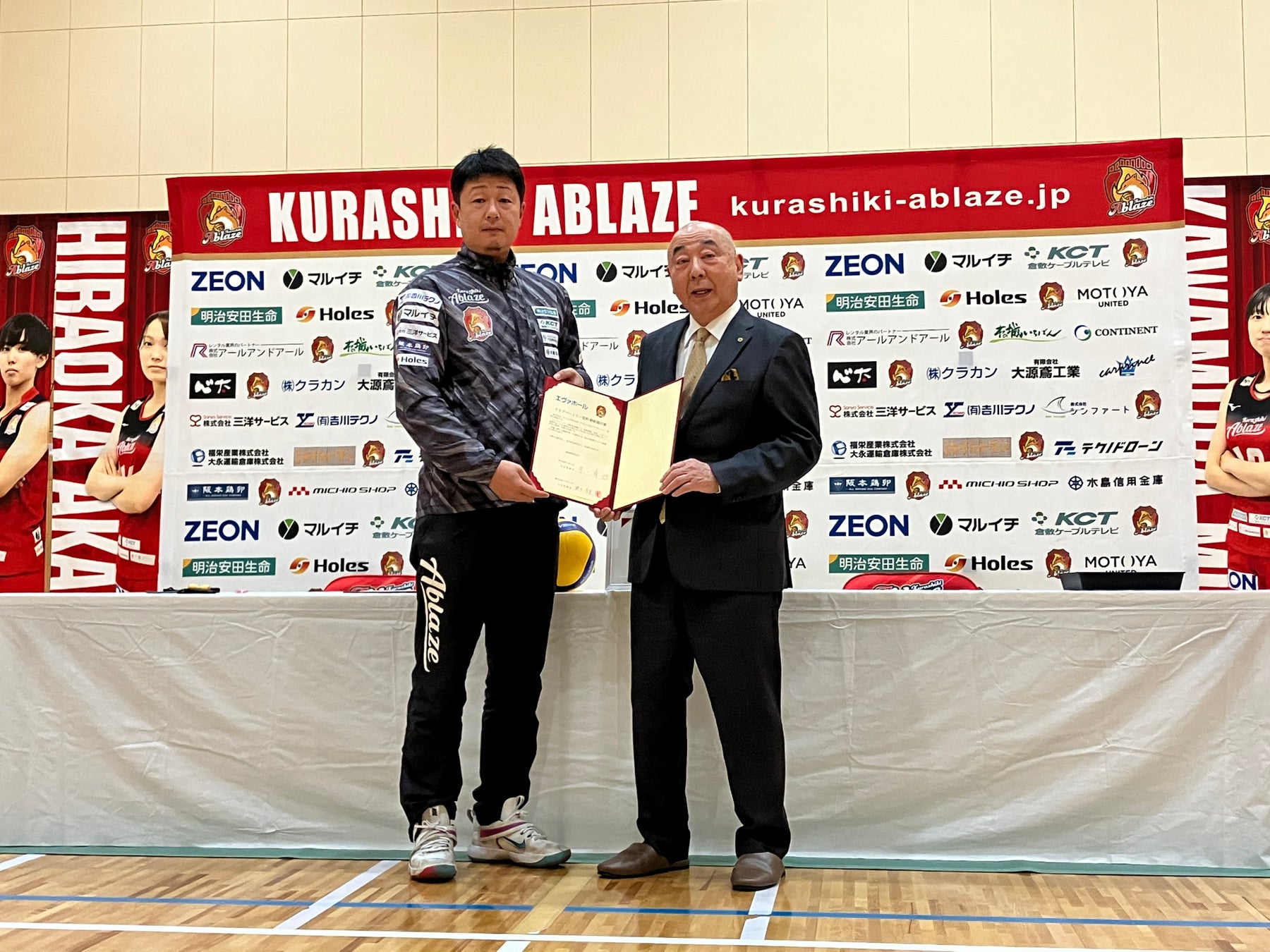 この度株式会社日本トリムと倉敷アブレイズはチーム発足初めて「ウォーターヘルスケアパートナー」として契約を締結いたしました。本契約に基づき、株式会社日本トリムと倉敷アブレイズは、チームの強化はもちろんお互いの事業の特性を活かし、協働による活動を推進することによって地域活動発展に寄与することを目指します。