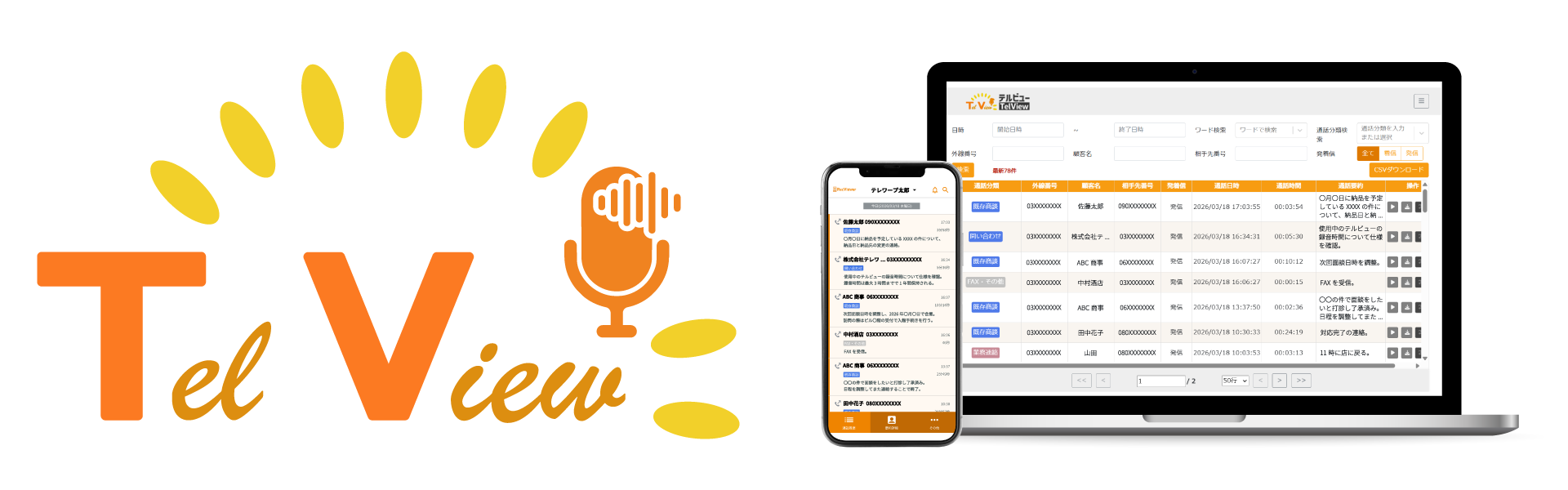 「テルビュー」は、テレワープのオプションサービスとしてラインナップに加わり、テレワープによって行われた固定電話番号の通話をすべて自動で録音します。