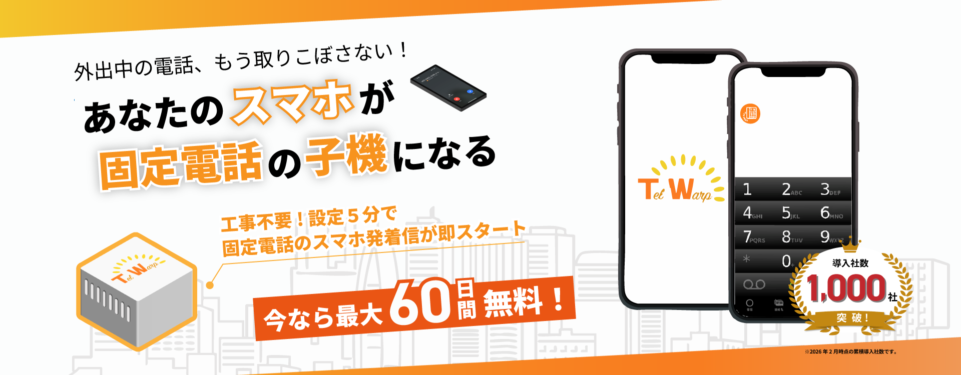 当社は、オフィスの固定電話をスマートフォンのアプリで持ち歩ける「テレワープ」を中心に、中小企業・個人事業主の通信コスト削減と業務効率化を支援しています。