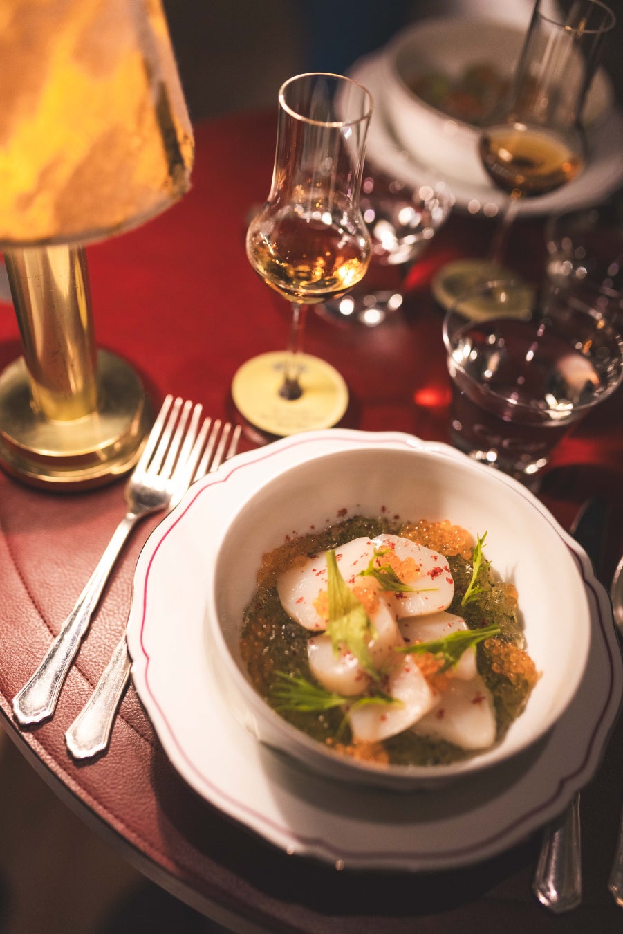 クラブ会員とマッカラン顧客に向けて開かれたこのエクスクルーシブなディナーイベントでは、「ザ・マッカラン ダブルカスク12年」を使った2種類の和風カクテル、最新リリースの「ザ・マッカラン Home Collection River Spey」、「ザ・マッカラン シェリーオーク25年」という贅沢なウイスキーのコースを料理とのペアリングで楽しんだ後、”サムライ・ギタリスト”の異名を持つMIYAVIによるエネルギッシュなライブパフォーマンスへと誘われた。