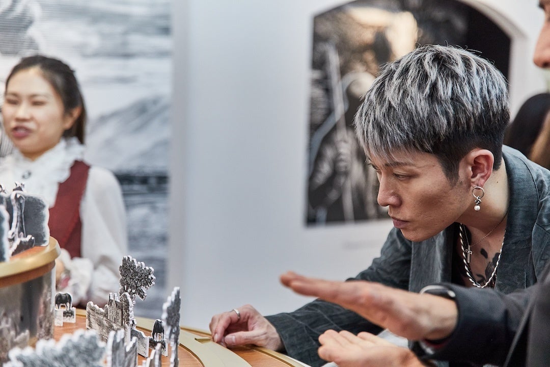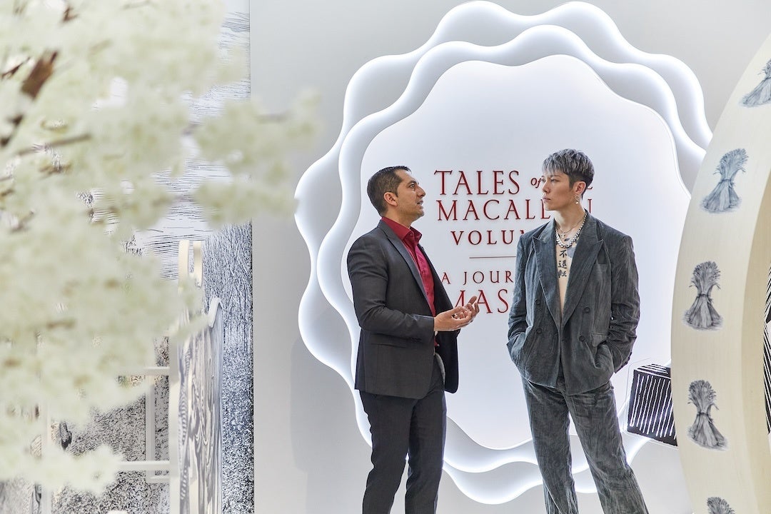 また、香港でアートウイークが開催中だったこともあり、MIYAVIは香港コンベンション&エキシビションセンターに設置されていたザ・マッカランのイベントスペースを訪問。最新の現代アートを堪能しながら、ザ・マッカランの創設者であるアレクサンダー・リード氏へオマージュとして作られた344 セット限定コレクションである〈 Tales of The Macallan Volume II〉の展示を見学した。
