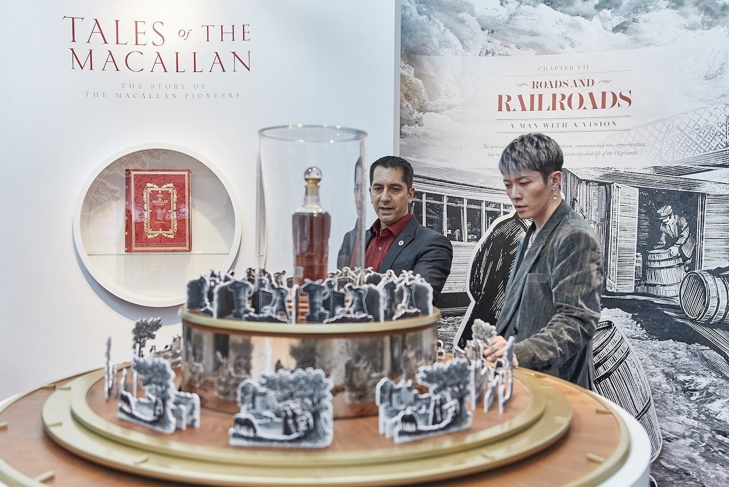 「 Tales of The Macallan Volume II – A Journey to Mastery〉の展示では、ザ・マッカランの創業者のアレクサンダー・リード氏がどのようにしてこの崇高なブランドを始めるに至ったのかという歴史を知ることができました。どうやってクリエイションが生まれたのかというオリジン(起源)の部分は作品の強さに繋がるとても大事なところだと思います。マッカランの持つ味の強さだけでなく、創業者の個人的な歴史に織り込まれた不屈の精神にも魅了されました。農家の息子として生まれた彼が、教師になり、ウイスキーを作り始め、鉄道業にも関与するなど、ジャンルにとらわれずいつの時代も自分の道を切り開いてきた姿に感銘を受けました。彼の自分の使命を全うしようとする姿は、僕も音楽を通して人の心を開放するのが使命だと思っているので、共感します。展示のディテールにも驚きましたね。まさかイラストが木彫りの木版画だとは想像していませんでした。僕自身もこだわりが強いので、クラフトマンシップの大切さは実感しています。けっして派手ではないかもしれないけれど、こだわったディテールの積み重ねの先にいいものづくりはあると思っています。とても勉強になる展示でした。」