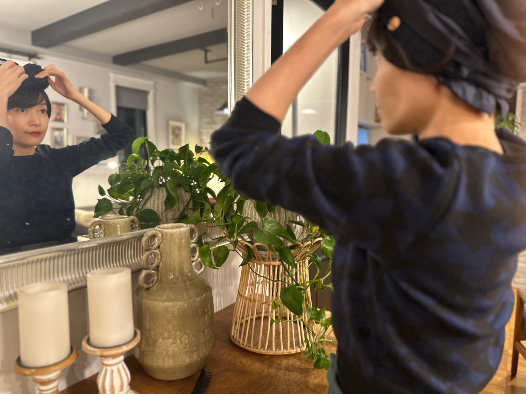 「スカーフハットの被り方は?」「おすすめの被り方アレンジは?」「洋服とのコーディネートを知りたい」「私にはどの色や柄が似合うの?」などの購入前の不安やお悩みにお答えします。