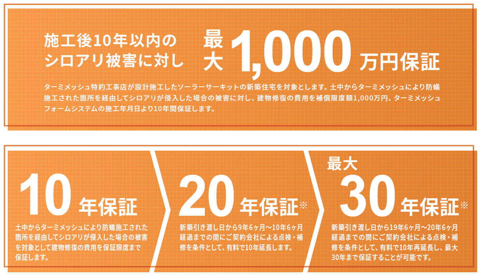 防蟻薬剤を使用しない防蟻システム「ターミメッシュフォームシステム」の保証期間を拡充