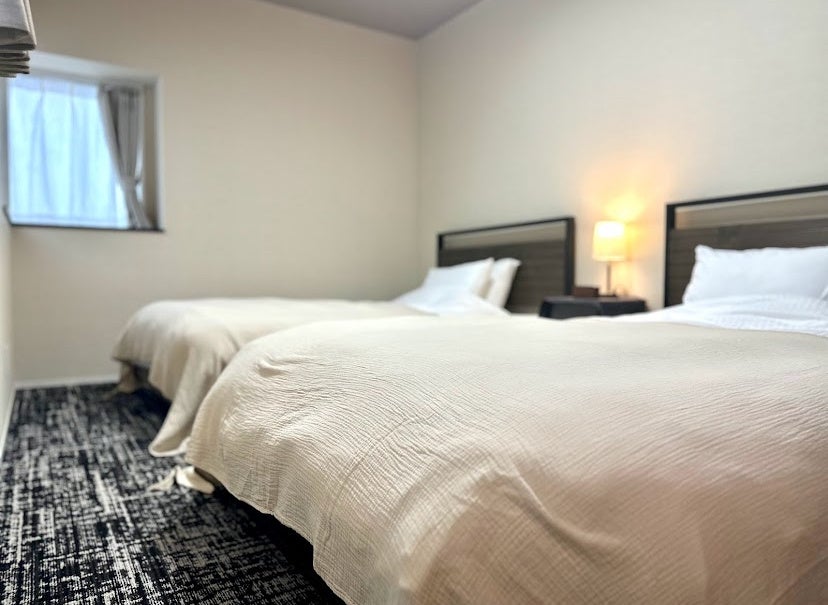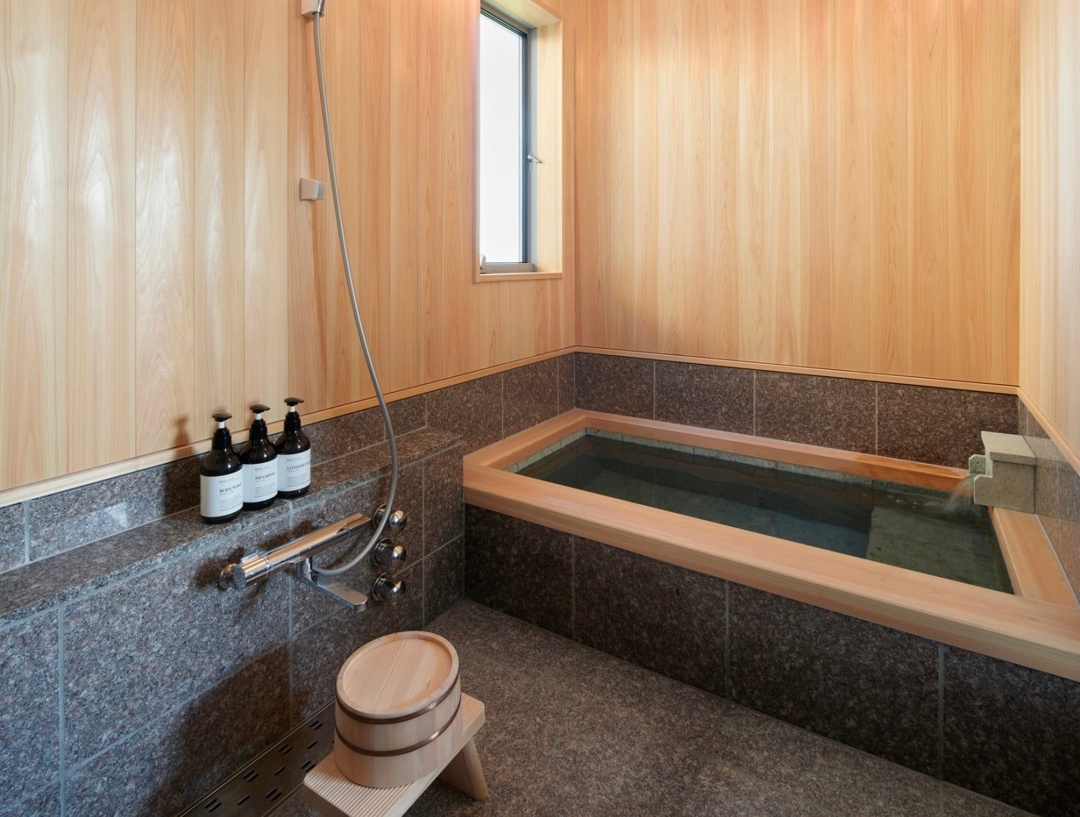 屋内設備:客室温泉風呂、シャワールーム、ウォシュレット付きトイレ、シングルベッド2台、和布団3セット、エアコン、冷凍冷蔵庫、各食器類、2口IHコンロ、シンク、電子レンジ、トースター(BALMUDA)、湯沸かし機、ドライヤー(Dyson)、WI-FI