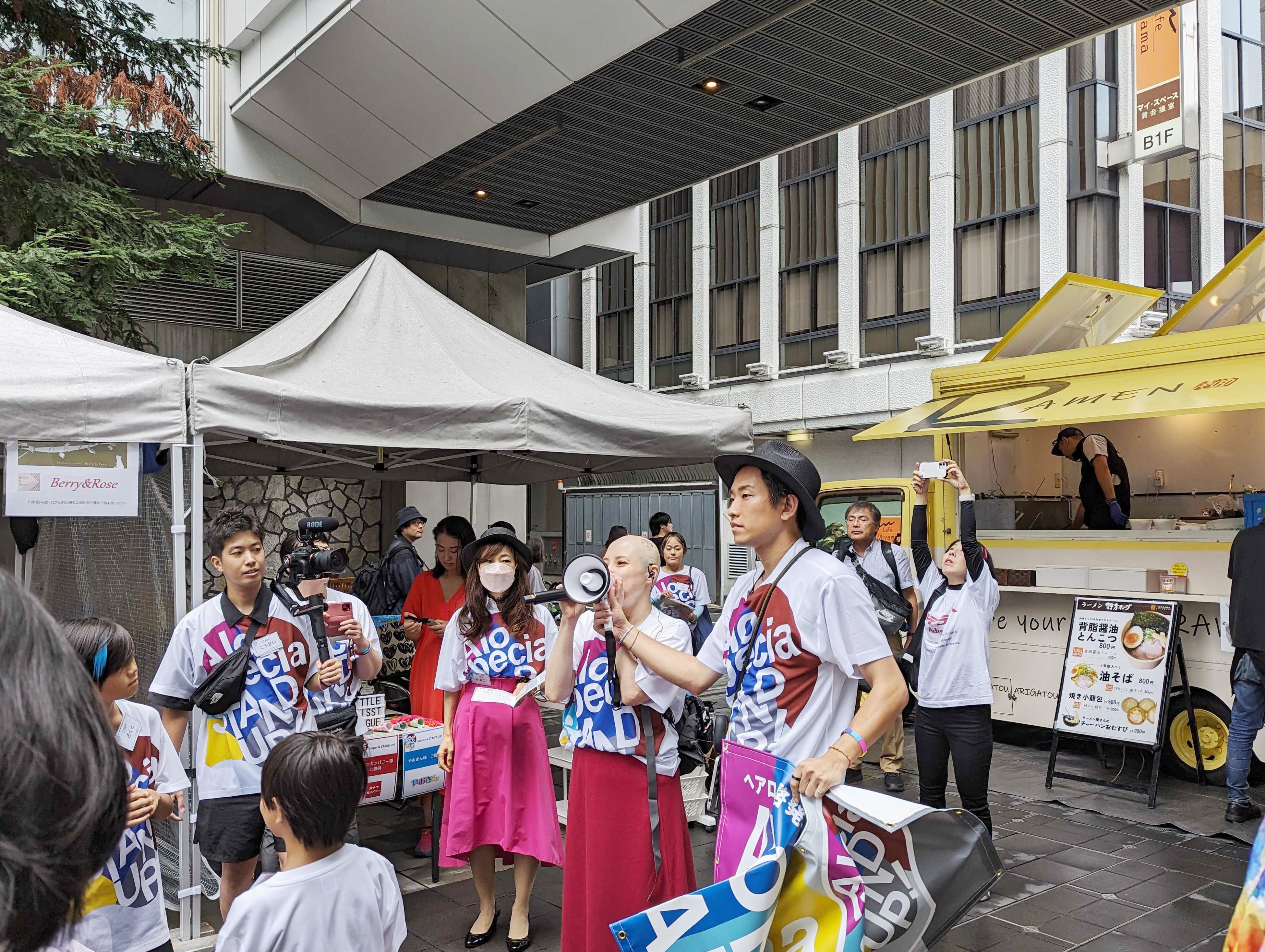 イベントのフラッグを掲げ、ヘアロス当事者の方やそのご家族・関係者の方で1時間ほどパレードがおこなわれ、様々な理由で髪の毛や体毛がなくなってしまうヘアロスの啓もう活動が実施されました。
