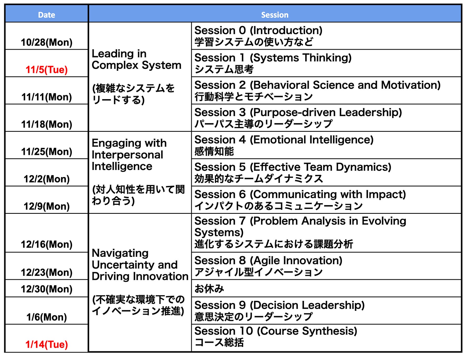 ※通常のカリキュラムの前に、受講者各自の目標(成果)を設定する特別プログラムを開催