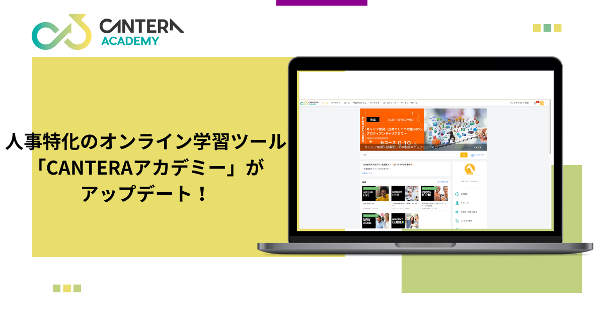 人事特化のオンライン学習ツール「CANTERAアカデミー」がサービス開始2週年を機にアップデートを実施!コンテンツ検索の最適化やオンボーディングなどユーザー目線での利便性を向上