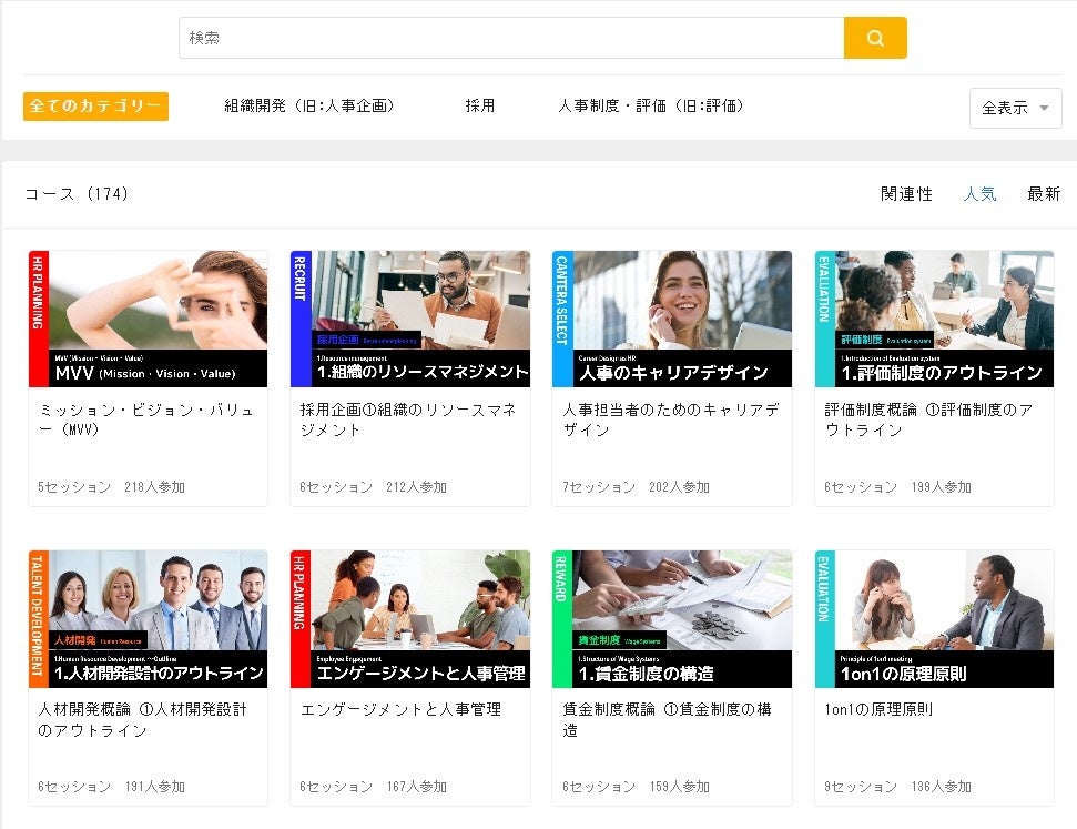 人事の原理原則から「採用」「オンボーディング」「組織開発」「人的資本経営」など人事の幅広い領域を学べるオンラインコンテンツを提供してきました。コースは170コース超、動画は約600本を突破し、毎月最新コンテンツや特集コンテンツをお届けしています。現役人事担当が監修し、必須の基礎知識から最新の流行知識まで「今知りたかった」情報をお届けしています。
