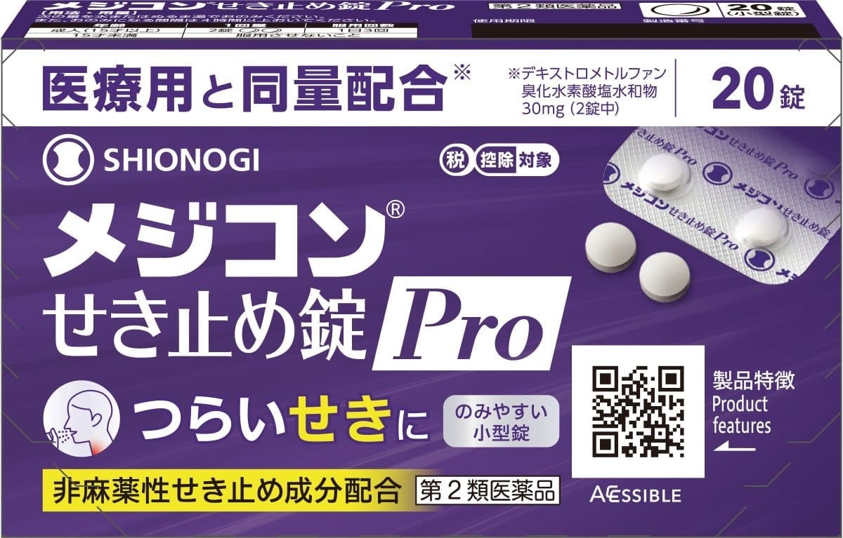 ※3メジコンせき止め錠Pro:デキストロメトルファン臭化水素酸塩水和物30㎎配合(2錠中)