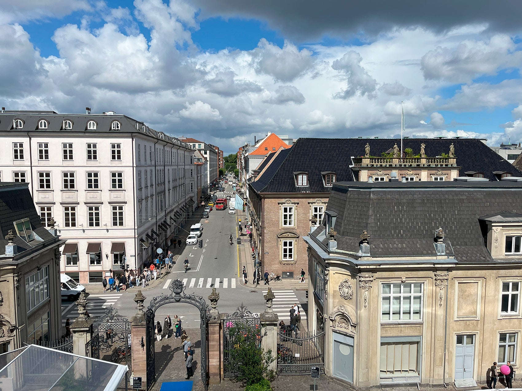 その上はついに最上階。ここからの眺めは圧巻でした(この記事の一番最初の写真をご覧ください)。高いビルの無いコペンハーゲンの街並みが立体的な雲の下に整然と、童話の一ページのように並んでいます。18世紀後半に建てられたというこの邸宅。貴族たちはこの眺めを一望しながら港町の風を浴び、毎夜ワインを傾けていたかもしれません…。この展示場は、そんな光景が一瞬ふっと浮かぶほどに、現実を離れたような空間でした。