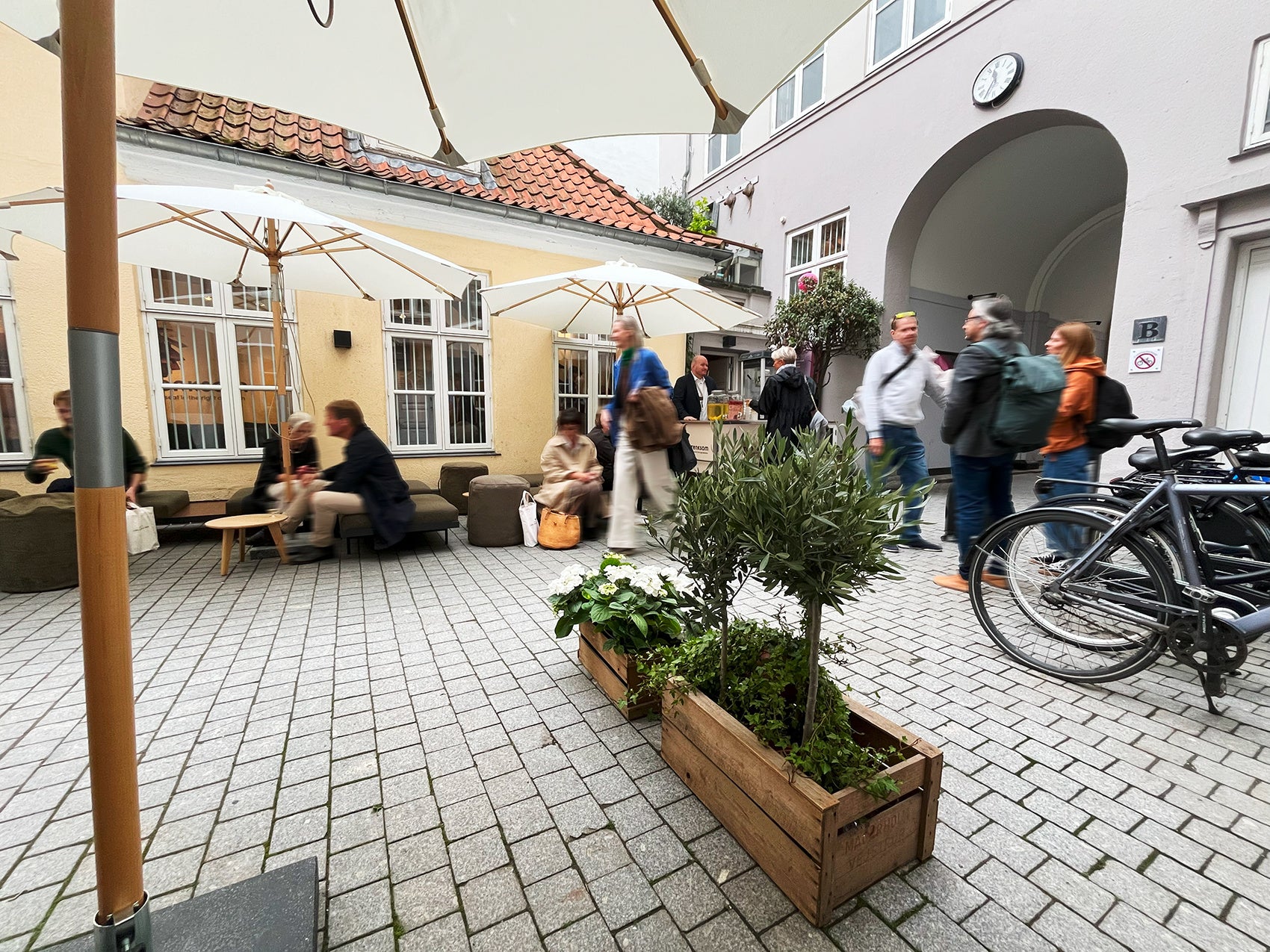 その後は、ニューハウンに近い運河沿いのショールーム、UMAGE(ウメイ)を訪ねました。"努力"という意味のデンマーク語を冠するUMAGE(ウメイ)は、北欧のデザインの伝統にインスパイアされたデザインでありつつも、機能的で誰にでも手の届く"affordable"なモノづくりをコンセプトにし2008年に生まれたブランドです。蔦の緑が這う建物の白い柱の間で大きな扉が開かれ、中庭の中空に羽でできたランプが浮かび、人々を迎え入れている空間は印象的でした。