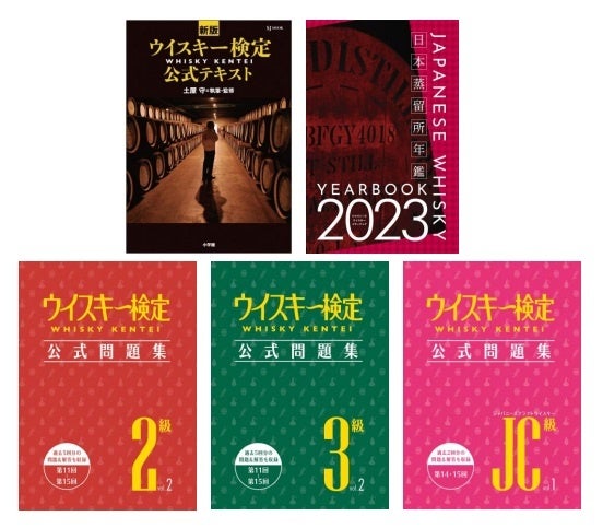 ウイスキー検定は、ウイスキーの定義や原料といった基本に始まり、製造工程、世界5大ウイスキーの歴史や蒸留所の紹介など、ウイスキーの基本をあますところなく説明している「新版 ウイスキー検定公式テキスト」、日本国内の蒸留所約80ヵ所を紹介している「ジャパニーズウイスキーイヤーブック2023」のほか、過去問題集や参考資料も充実していますので、効率的に勉強していただけます。