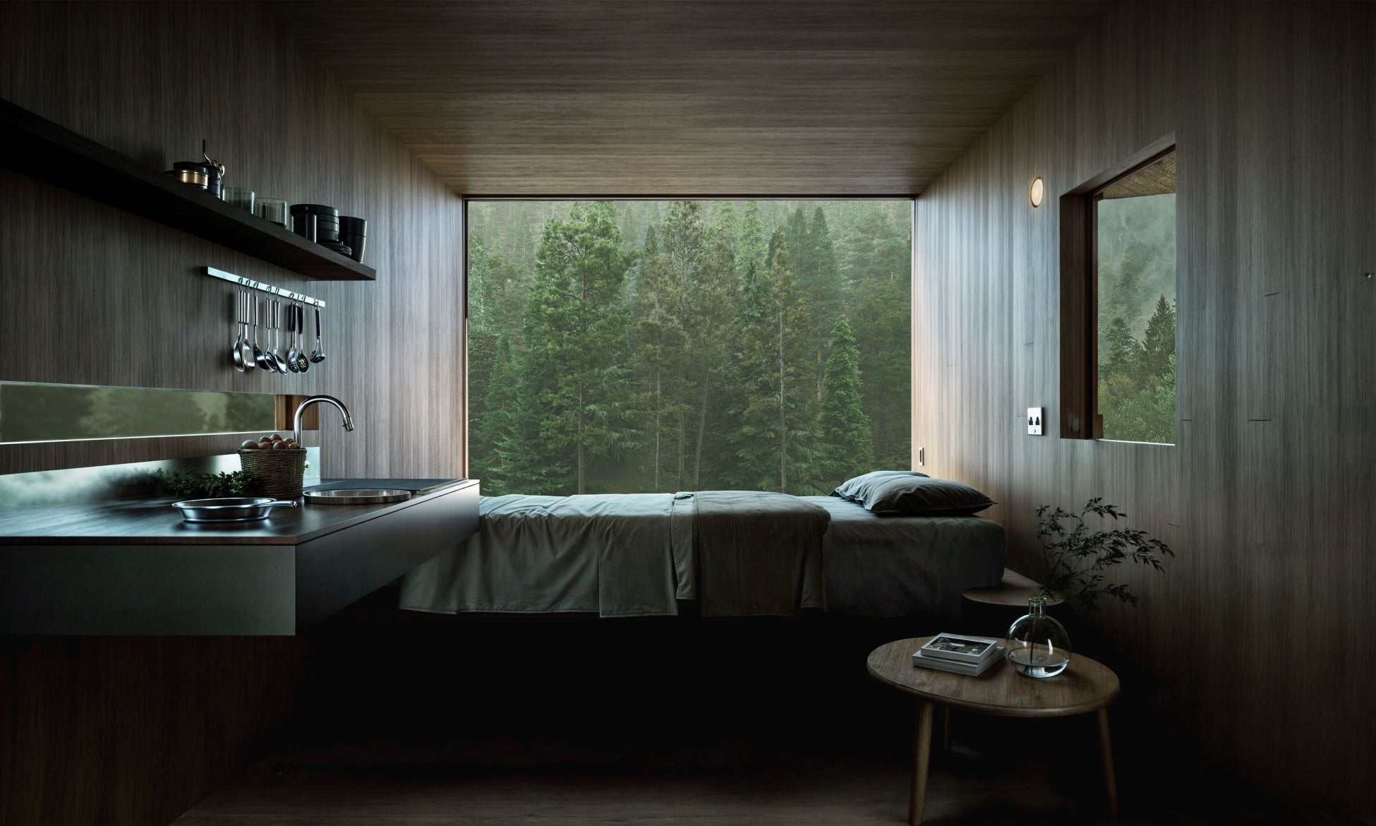 建築素材には初期モデル「Earthboat 1」と同様に国産杉材のCLTを使用。断熱、蓄熱に優れ快適な住空間に仕上がっています。