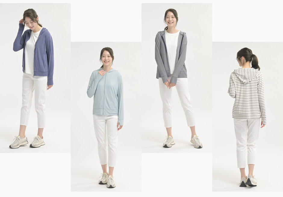 伸縮性も高く、着心地抜群の夏の羽織りの大定番、パシオスの「着る日焼け止め」シリーズ。今年は「抗菌」機能をプラスし、清潔に愛用いただけるアイテムに生まれ変わりました。