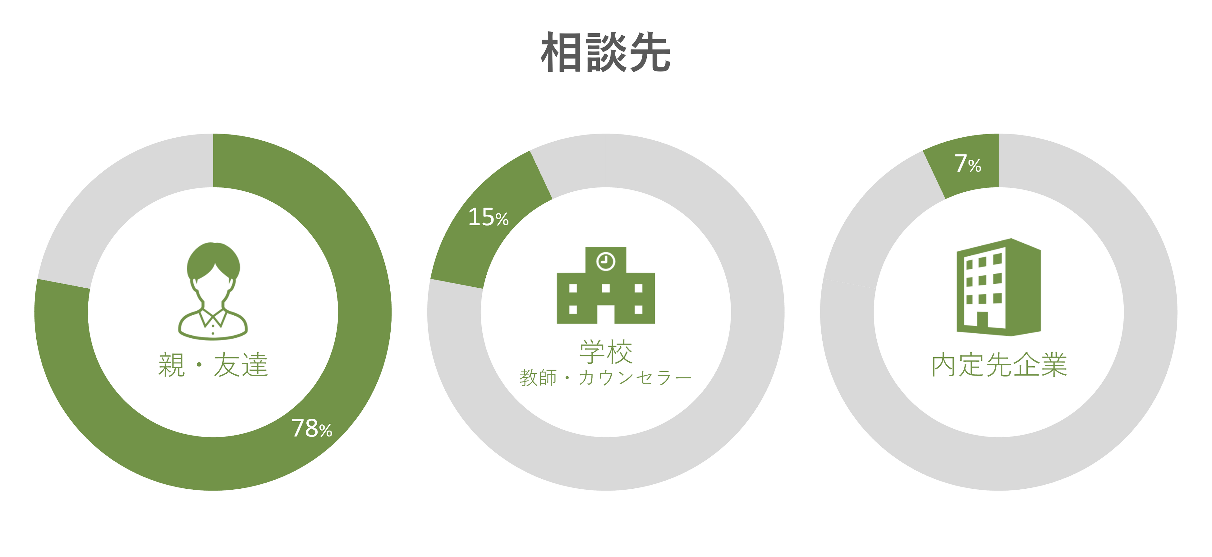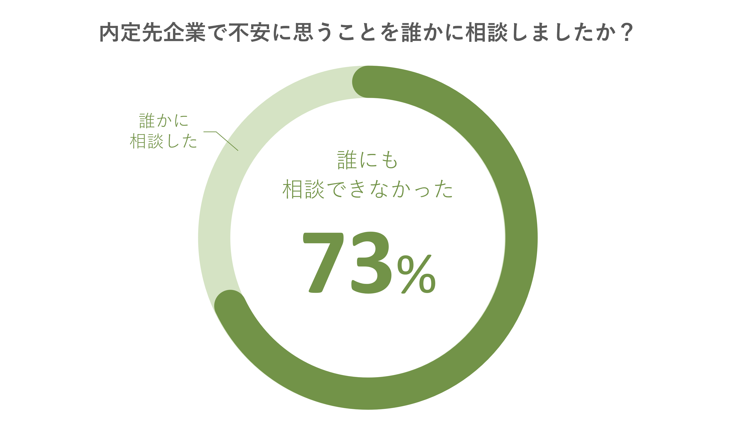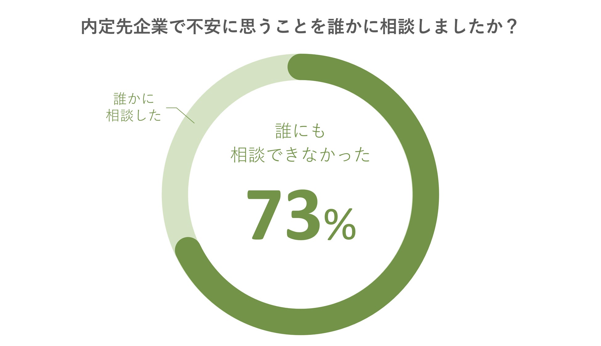 人に相談する心理的ハードルの高さから不安が解消されず、内定辞退を決めてしまう内定者は少なくありません。内定後、不安を誰にも相談できなかった人は73%にも達しています。
